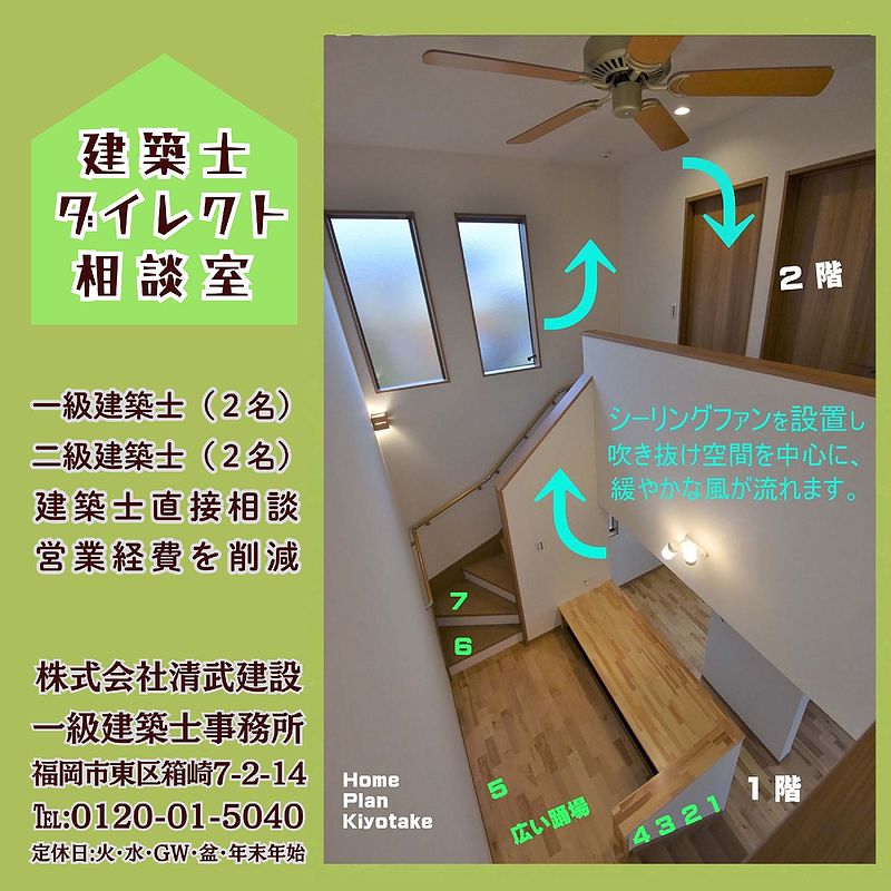 吹き抜けと組み合わせることで、自然光を取り込みやすく、風の通り道も確保しやすくなります。