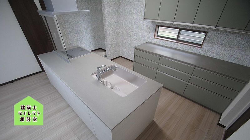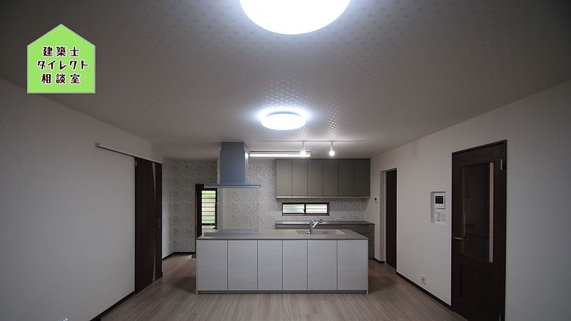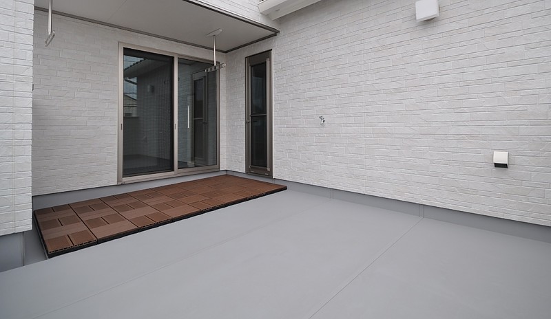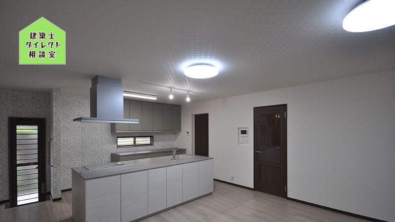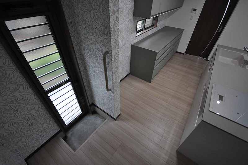 しかし、当物件では屋内に土間スペースを設けており、履物は室内に収納されます。(上記写真)そのため、雨天時でも履物が濡れる心配がなく、快適に利用することができます。これは、キッチンスペースに十分な余裕を持たせた設計により、内土間を確保しながらも、広々とした作業空間を実現できたからこそ可能になった工夫です。