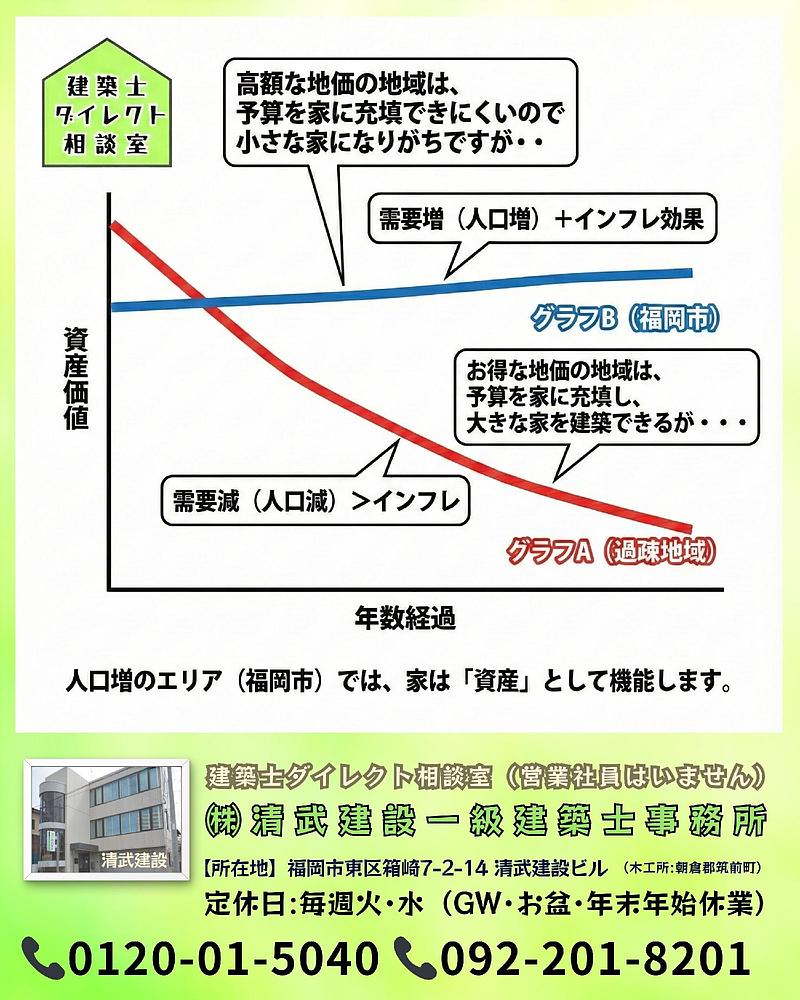 「特に、人口が増え続ける『福岡市』エリアは、資産価値が落ちにくいです。」