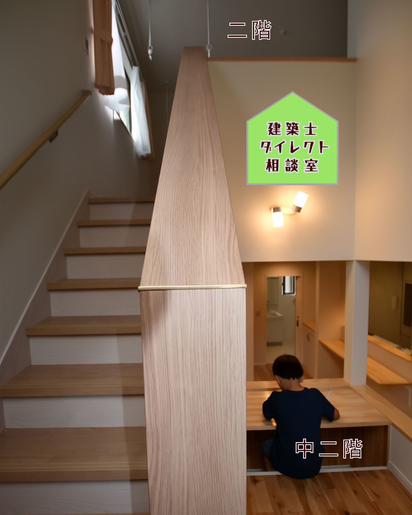 春日市注文住宅 福岡市工務店の木の家 スキップフロアー 中二階