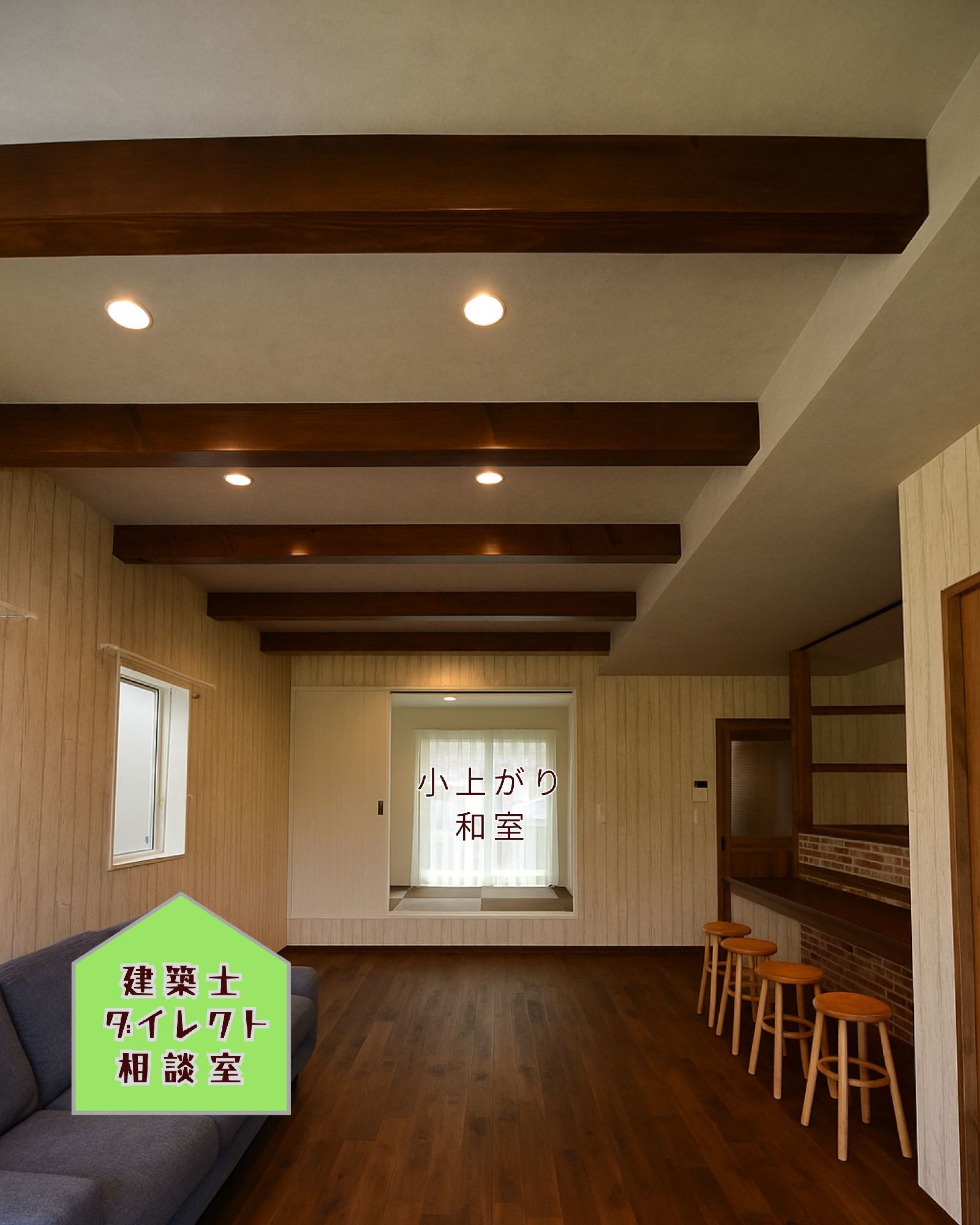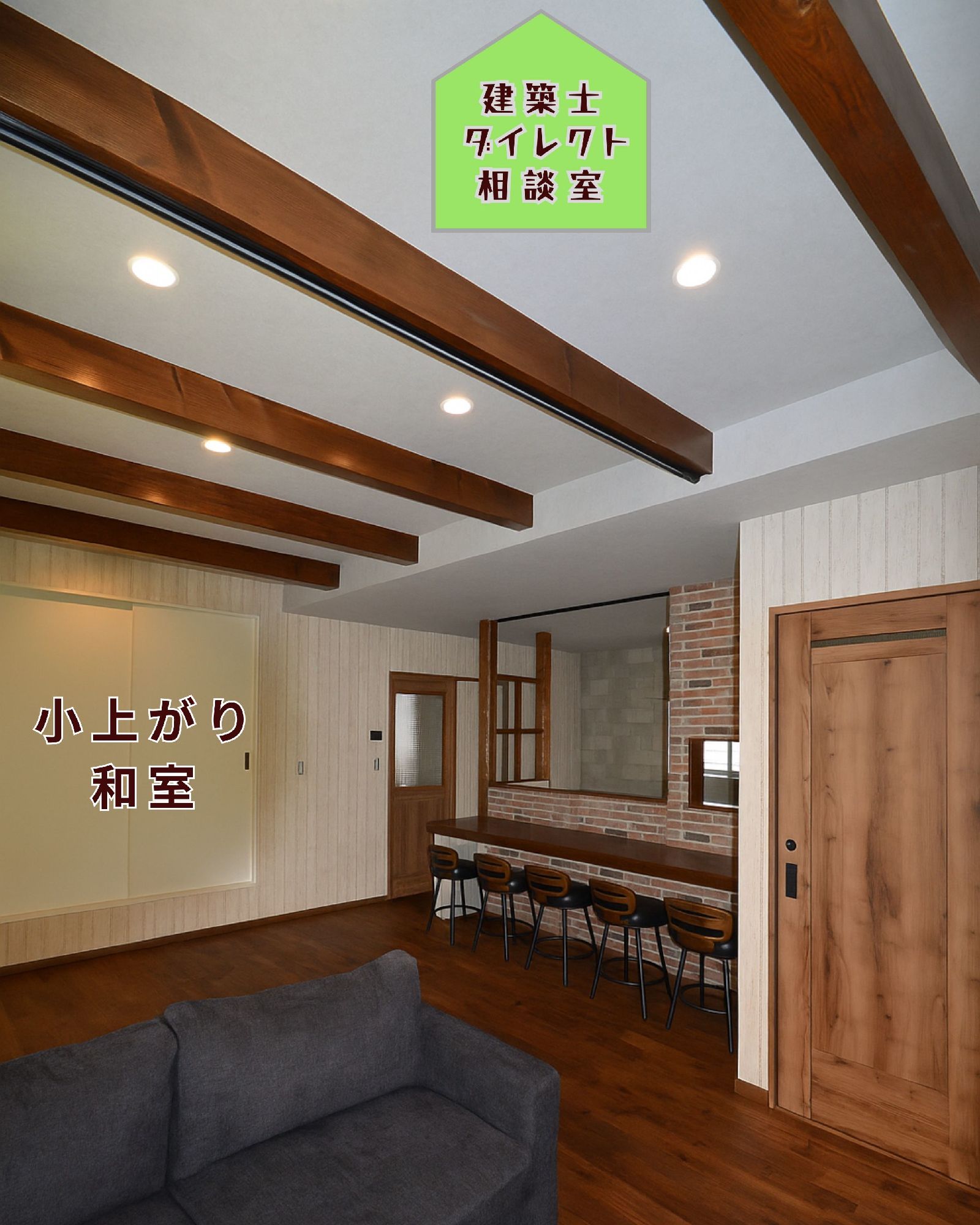 ◆梁あらわしによる天井高さ確保(2.7M)。⇒ 開放性のあるリビング ◆シャビー&インダストリアル風のコーディネート。 ◎お問い合わせ先 福岡市東区箱崎7-2-14 株式会社清武建設(清武一級建築士事務所) 電話 0120-01-5040(火・水・定休)