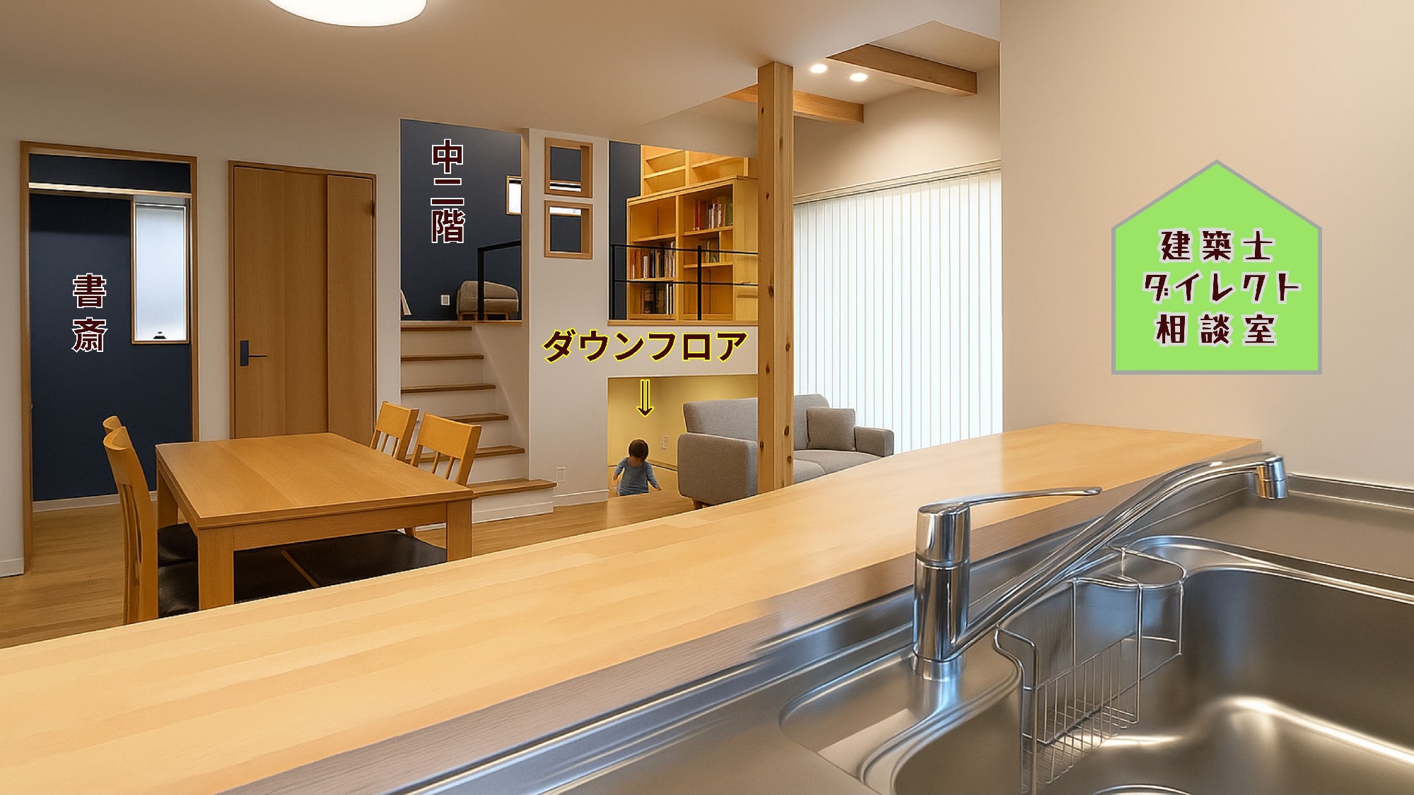 福岡市南区注文住宅 ダウンフロアリビング+スキップフロア 工務店&建築設計事務所 ㈱清武建設