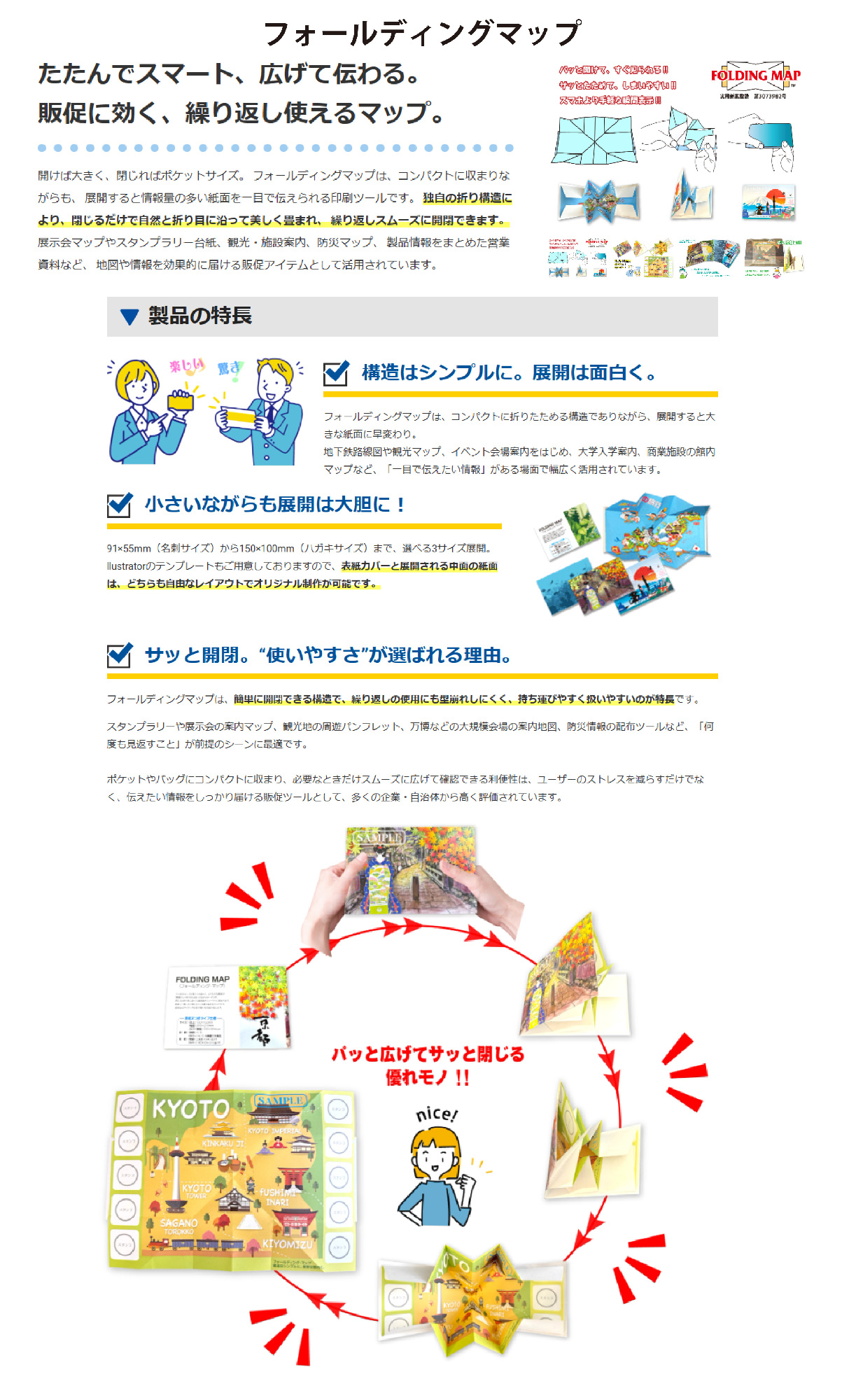 コンパクトに折りたためて、持ち運びや配布にとても便利です。