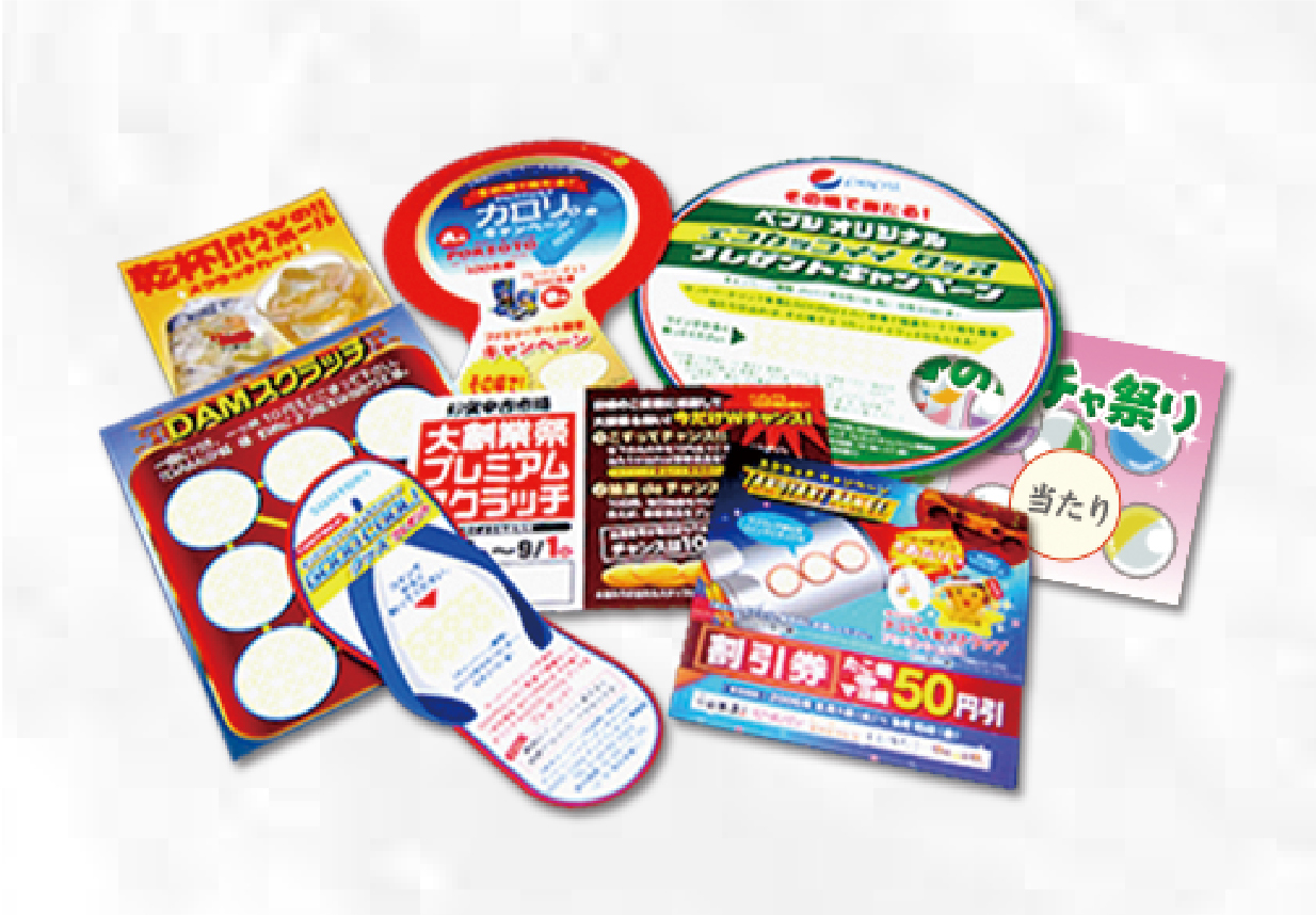 キャンペーンやプロモーション、懸賞・抽選イベントなど、さまざまな場面で活躍し、削る瞬間のワクワク感が次のアクションへとつながります。手軽で楽しい参加型の仕掛けとして、販促活動に新たな価値を生み出します。
