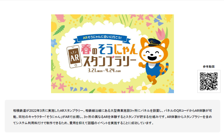 AR(拡張現実)使用例としてスタンプラリーなどもあります。