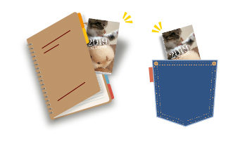 手帳やファイルに挟んだり、折りたたんでデスクに置いて使用していただくこともできます。
