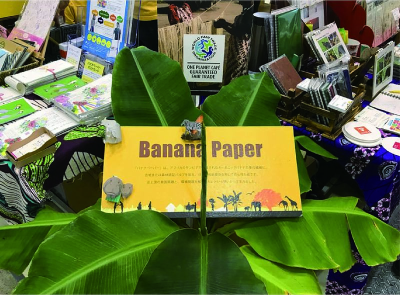 バナナペーパーは、今までは廃棄されるだけだったオーガニックバナナの茎から取った「バナナ繊維」を原料として使用し、古紙または森林認証パルプを加えて作られた「フェアトレード」の紙です。