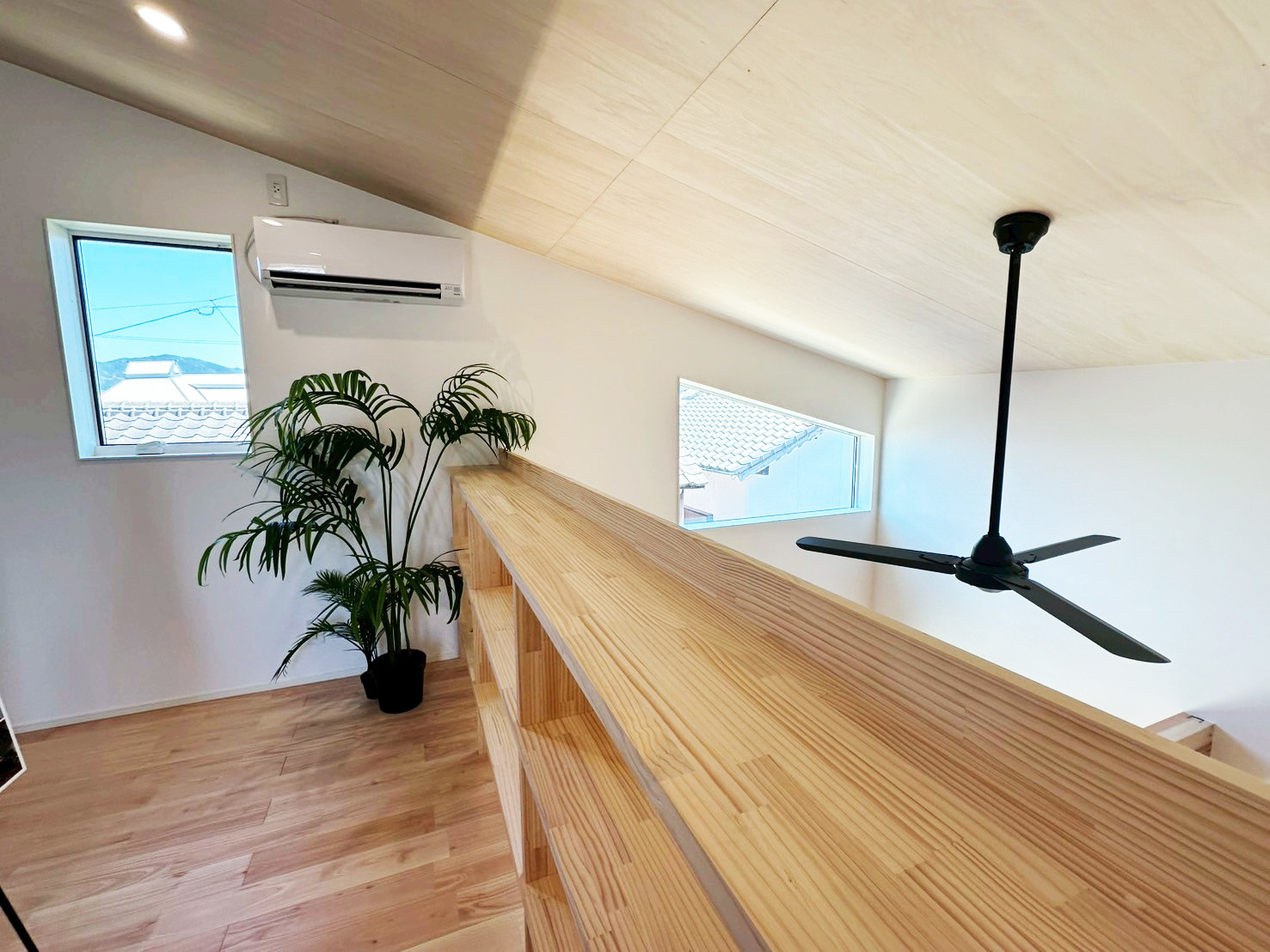 吹抜け空間に欠かせないのが、天井でゆっくりと回るシーリングファンです。 これは単なるインテリアではありません。高性能住宅であっても、暖かい空気は上に、冷たい空気は下に溜まろうとします。シーリングファンによって空気の流れを緩やかにつくることで、吹抜けの上下の温度を均一に保ち、エアコンの効率を最大化させることができます。私たちは、その家の容積や吹抜けの形状に合わせて、最適なサイズと回転速度、そしてメンテナンスのしやすい設置高さをミリ単位で計画します。