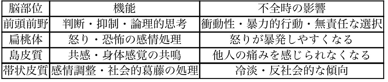 • 社会脳=共感・抑制・判断力を支える「前頭前野」を育てることが、最大の事件予防策