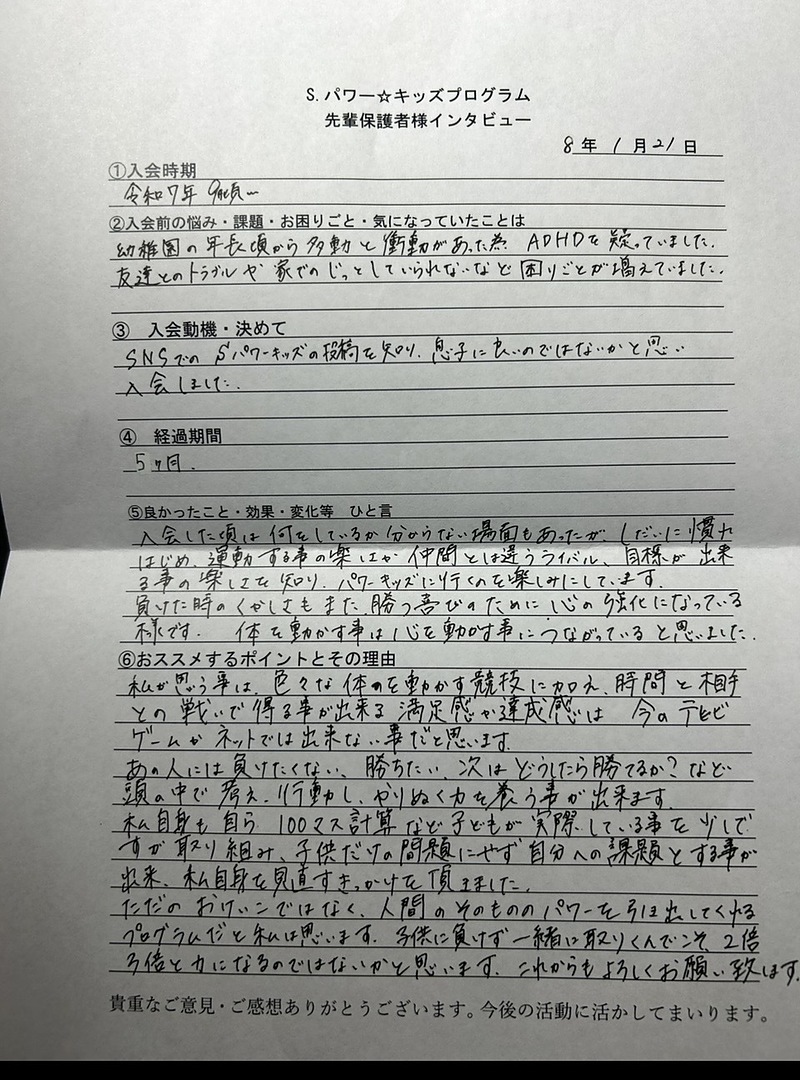 悩んでいたところSNSで S.パワーキッズプログラムプログラムの投稿を知ったそうです。
