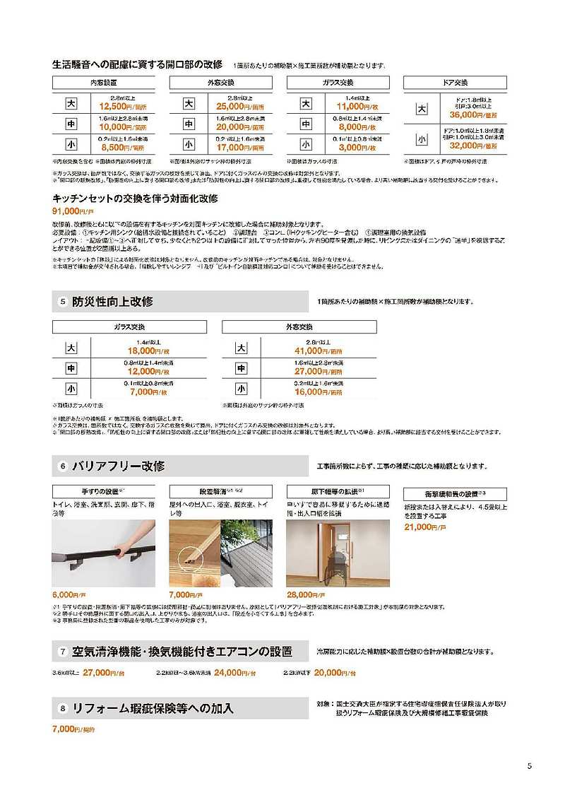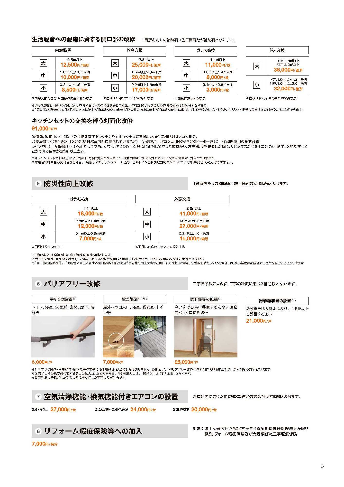 リフォーム工事は必須工事+任意工事の対象項目に対して補助金が還付されます。