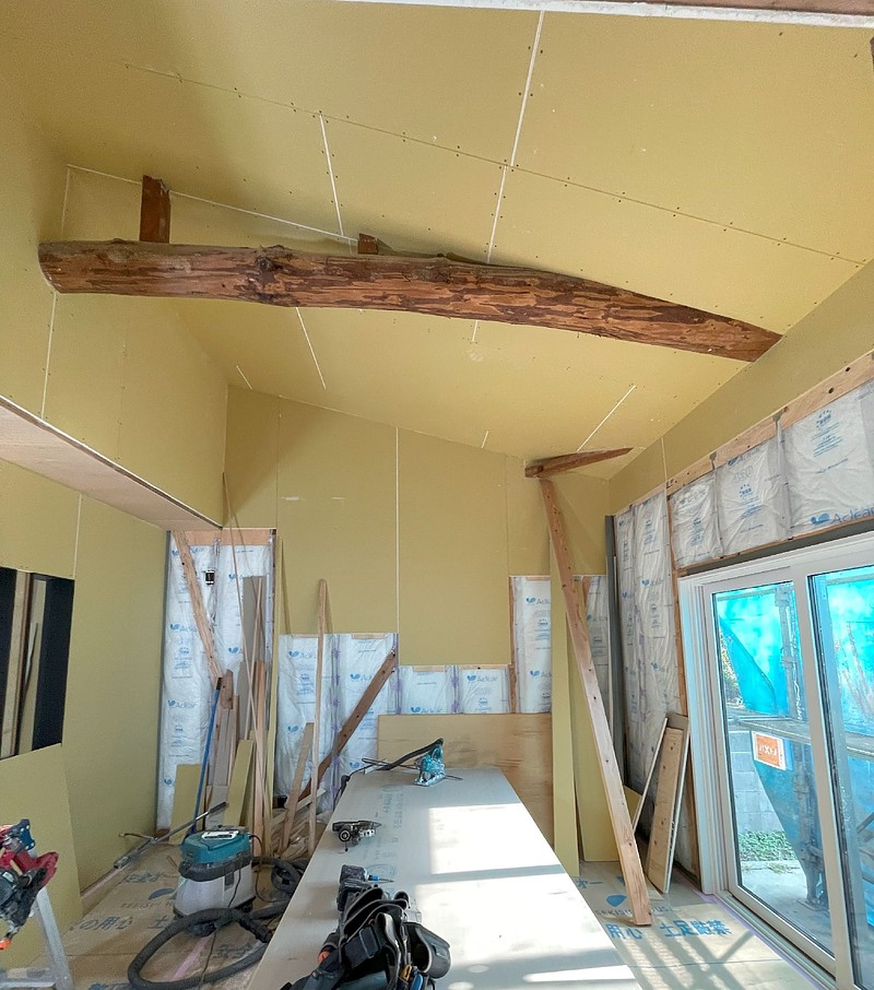 こちらは解体途中に立派な梁があり、梁を見せるため、天井高さをぎりぎりまで上げることへ計画変更しました。