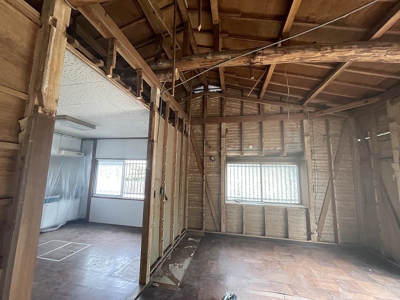 和室部分の天井を解体した直後の写真です。築48年の木造2階建ての長らく空き家となっていた戸建ての物件です。