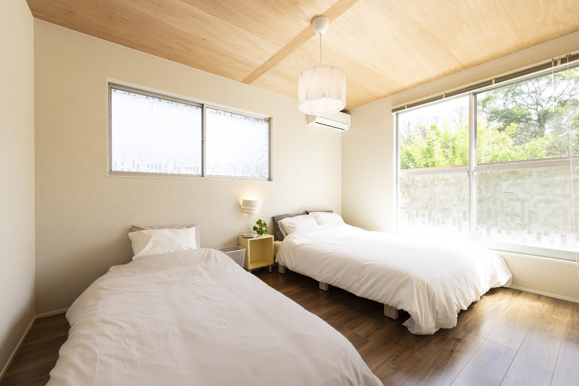 約6帖の洋室が二部屋あり、2部屋の寝室として間取りは変えず収納部分は撤去しました。