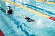 水泳教室では浮きながら泳いでもらうため、けのびの姿勢で浮いてもらいます。