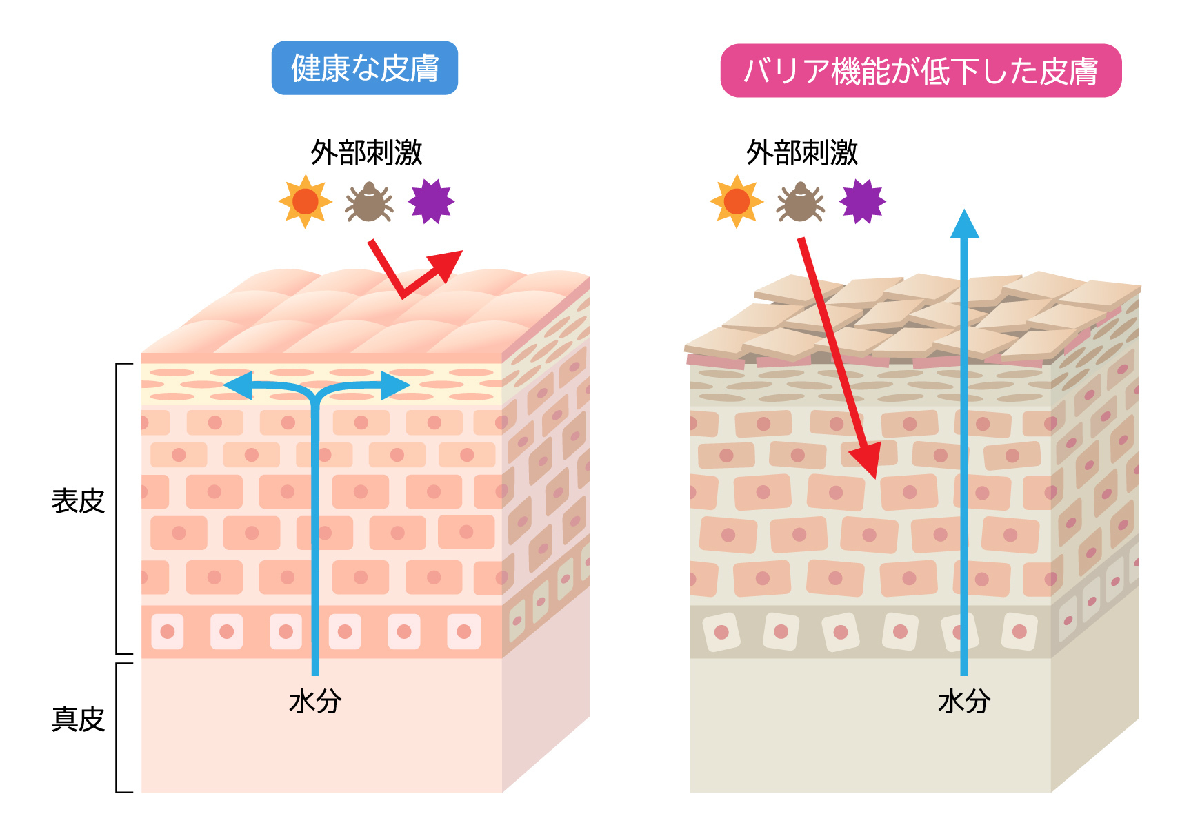 紫外線は肌の水分を奪い、バリア機能を低下させます。