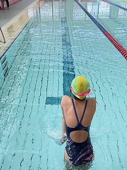 嬉しい報告『合宿の選手に選ばれました!』スイミングスクールに通っている女の子にレッスン最初は数年前スイミングスクールの選手コースの前の育成コースに上がるためにタイムを10秒縮めたいと依頼があったことです。本人の頑張りと家族のサポートで育成コースに上がり、その後選手コースで練習ができるようになりました。個人レッスンは定期的に継続し、泳ぎの修正だけでなくテクニック、目標の設定、目標に向けての練習方法、スイミングスクールでの練習の取り組み方、本人のメンタル面までお母さんの協力を得ながら進めてきました。なかなか進まないときもありましたが、各地区のスイミングスクールの中から基準にあった選手2,3名が集まり、今回のGW中の3泊4日の合宿に参加できるようになりました。これまでと違った環境での練習ですが、色んな事を感じて欲しいです。合宿後の報告も聞きたいと思います。ありがとうございました。