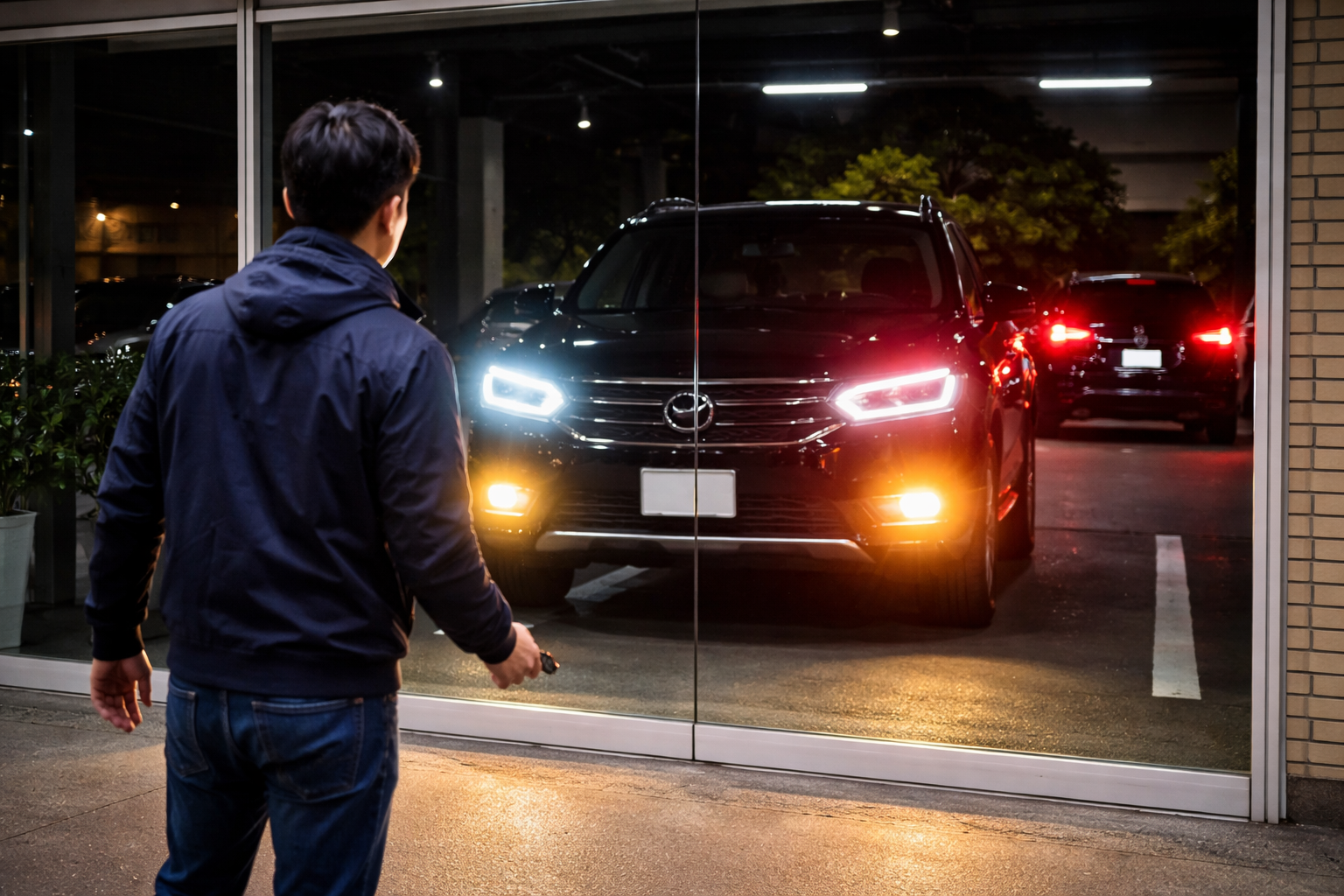 3. お店のガラスに映して確認!「ライト類の点灯チェック」