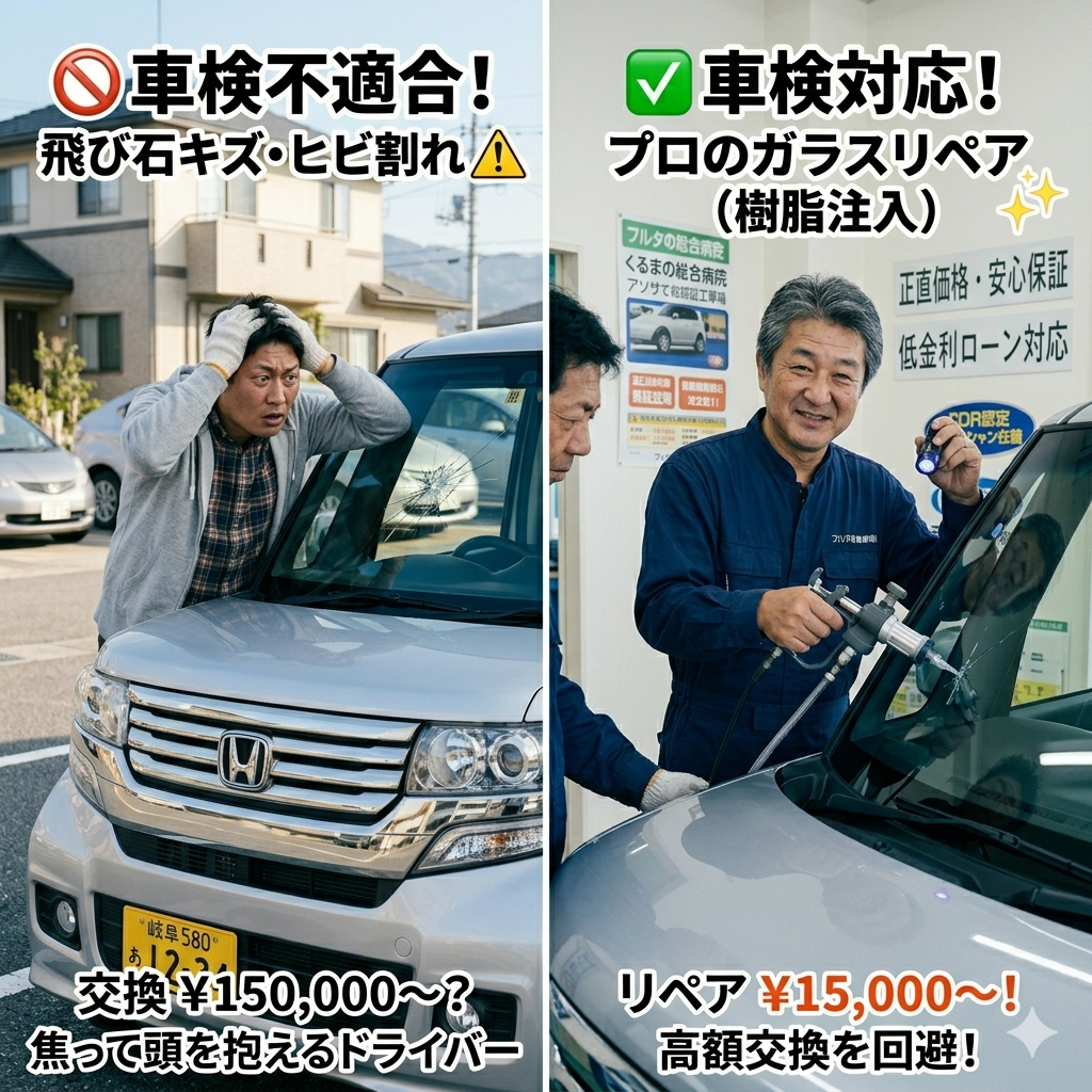 その小さなヒビ割れ、そのままでは絶対に車検に通りません! そして放置すれば、最悪のタイミングでガラス全体にヒビが走り、数十万円の高額修理に発展する「時限爆弾」なのです。
