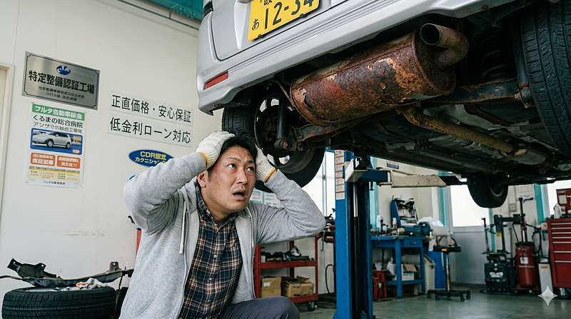 悲劇①:マフラーに穴が開き、車検一発アウト!