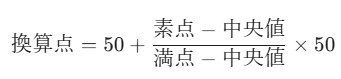 ※満点と中央値の間で点数が圧縮されます。満点に近づくほど引かれる幅は小さくなります。