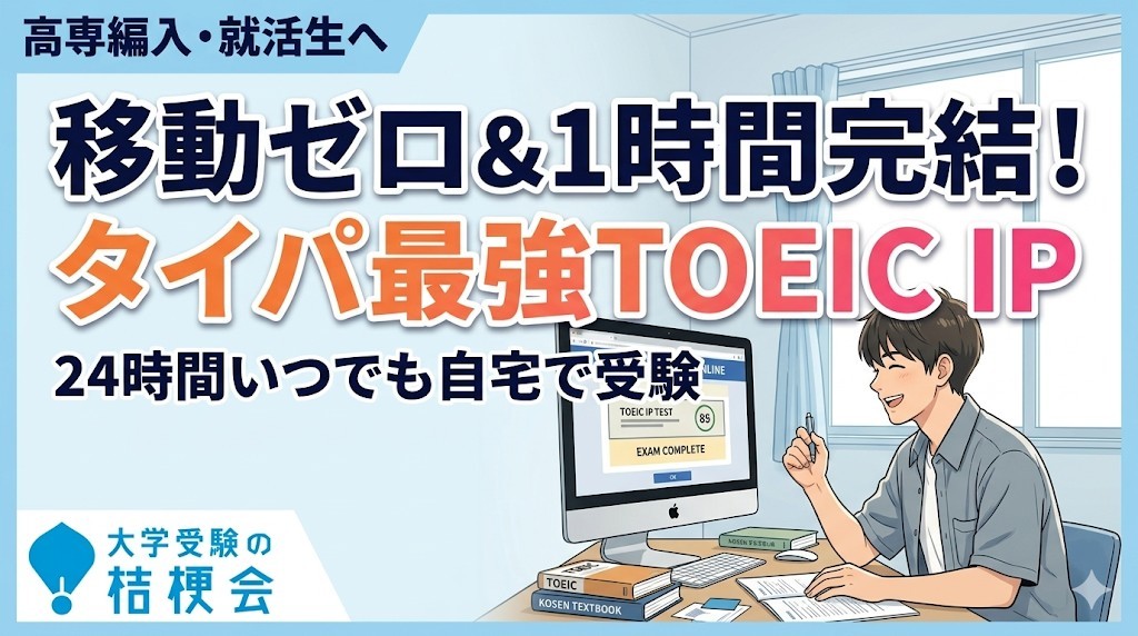 貴重な休日の時間を有効活用しながらスコアメイクができるオンラインIPテストなら、忙しい学生生活を送る高専生のアナタにとって便利なツールになるでしょう。「忙しい」を言い訳にせず、ぜひサクッと受験しスコアアップの機会を増やしてみませんか。