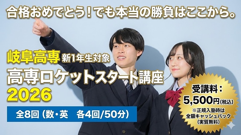 岐阜高専への合格、本当におめでとうございます。 難関を突破した実力は素晴らしいものですが、一つだけ忠告させてください。