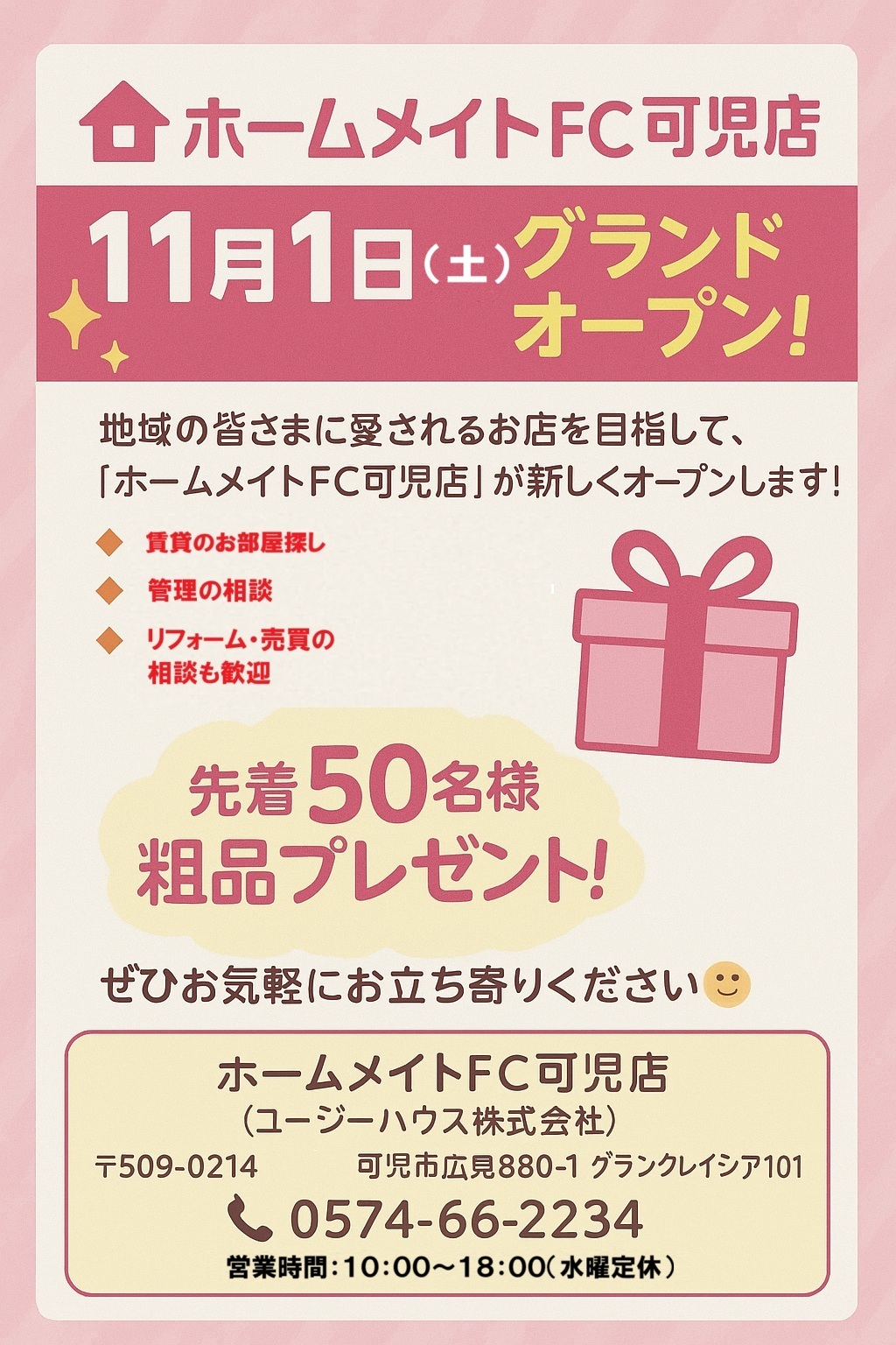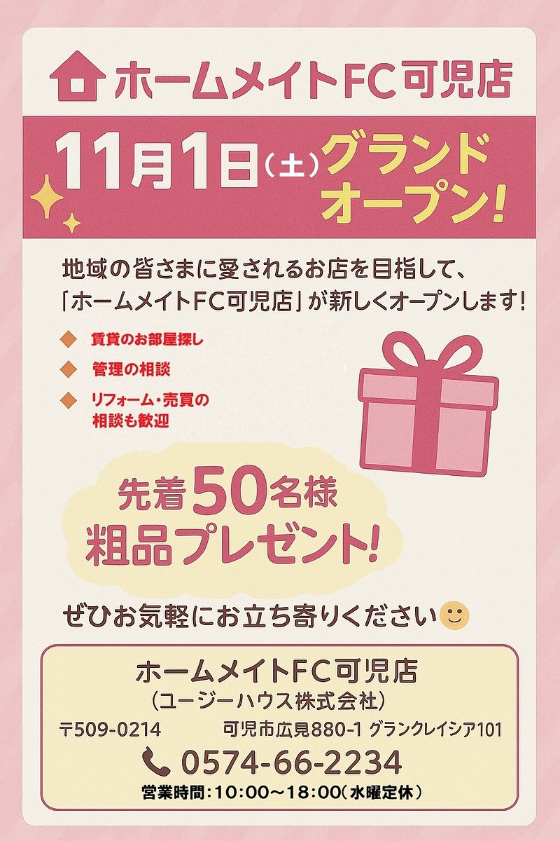 ホームメイトFC可児店 11月1日(土)グランドオープン