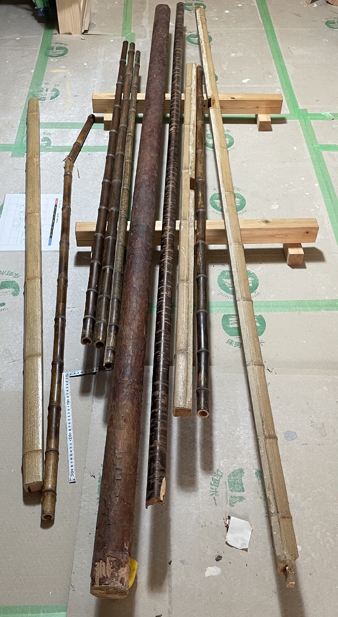 ですが、解体の際にどうしても傷んでしまった部分や、少しだけ天井を足す必要があり、新しい材料を探すことに。昔ながらの茶室に使う竹は、今ではなかなか手に入りません。