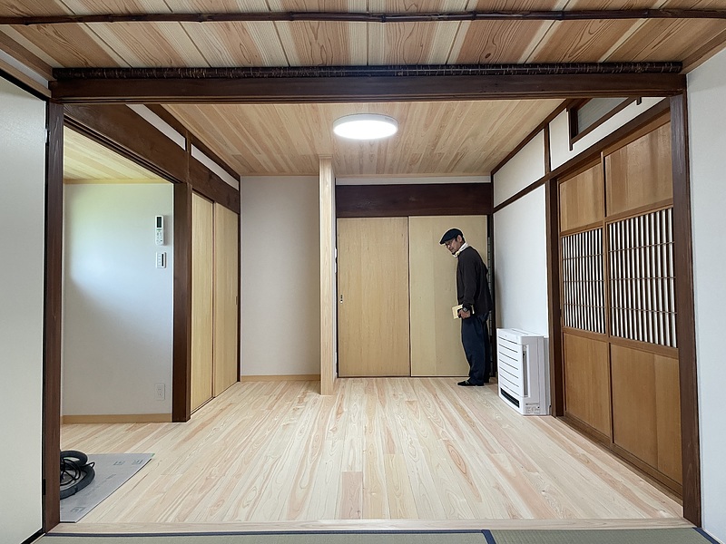 古材を再利用して新たな場所で活かす試みや、ミリ単位の精度が求められる鴨居や敷居の設置、そして職人の手仕事が光る左官工事。