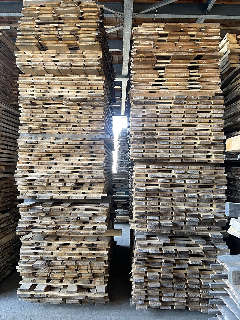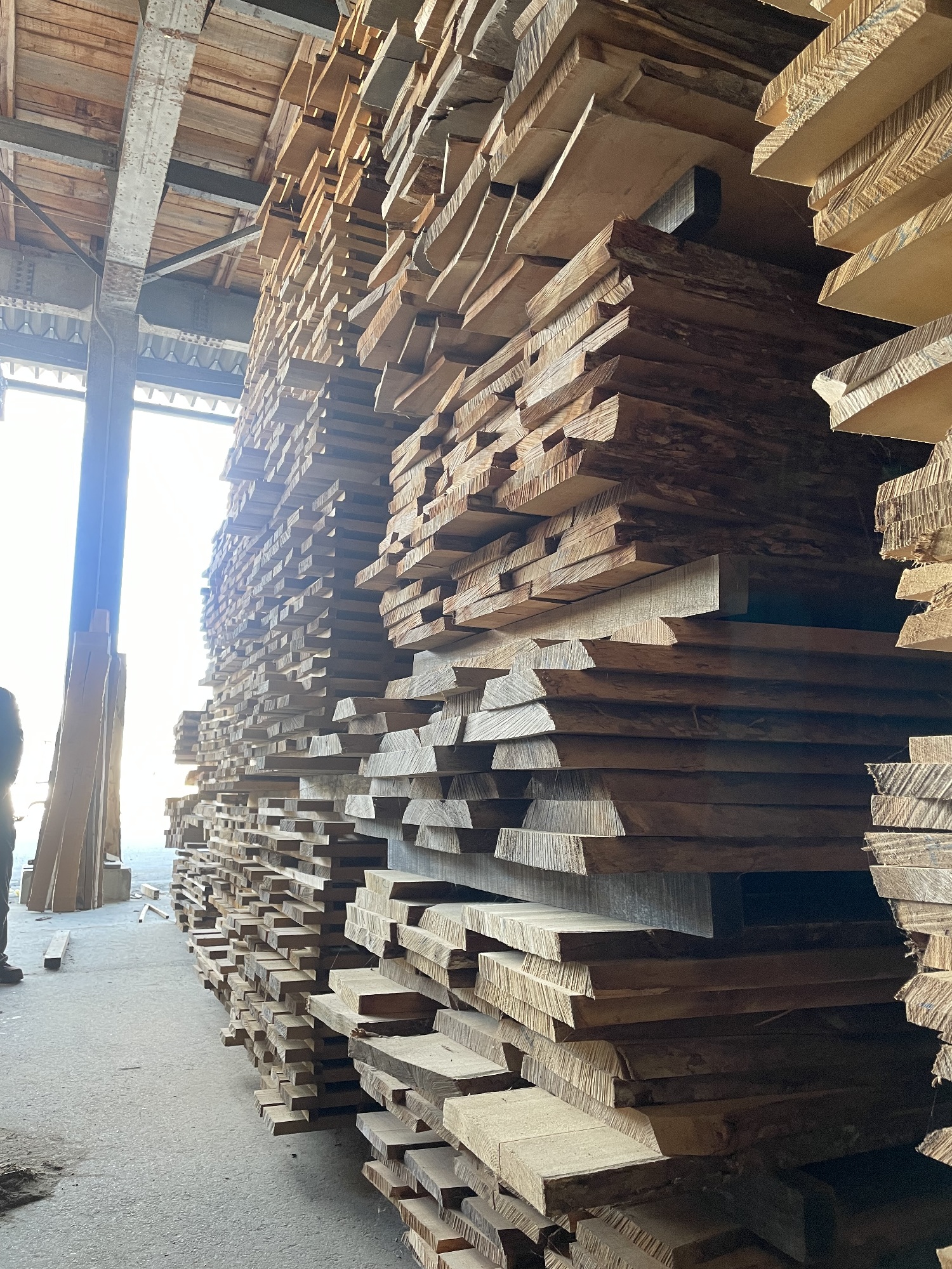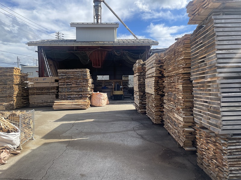 まず目に飛び込んできたのは、高く積み上げられた製材された材料の山です。