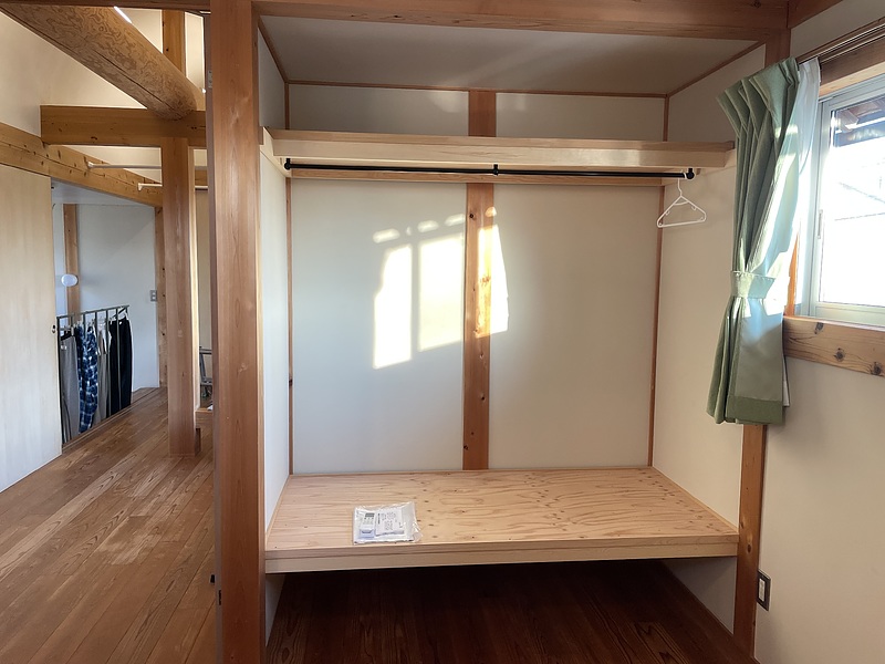そこで、単なる仕切りではなく、部屋の機能としてクローゼットに棚と服掛けをきちんと設けることになりました。