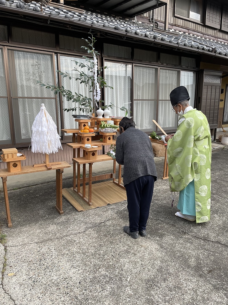 水の流れが変わる場所を触るため、工事を始める前にご家族とお祓いの儀式を執り行いました。
