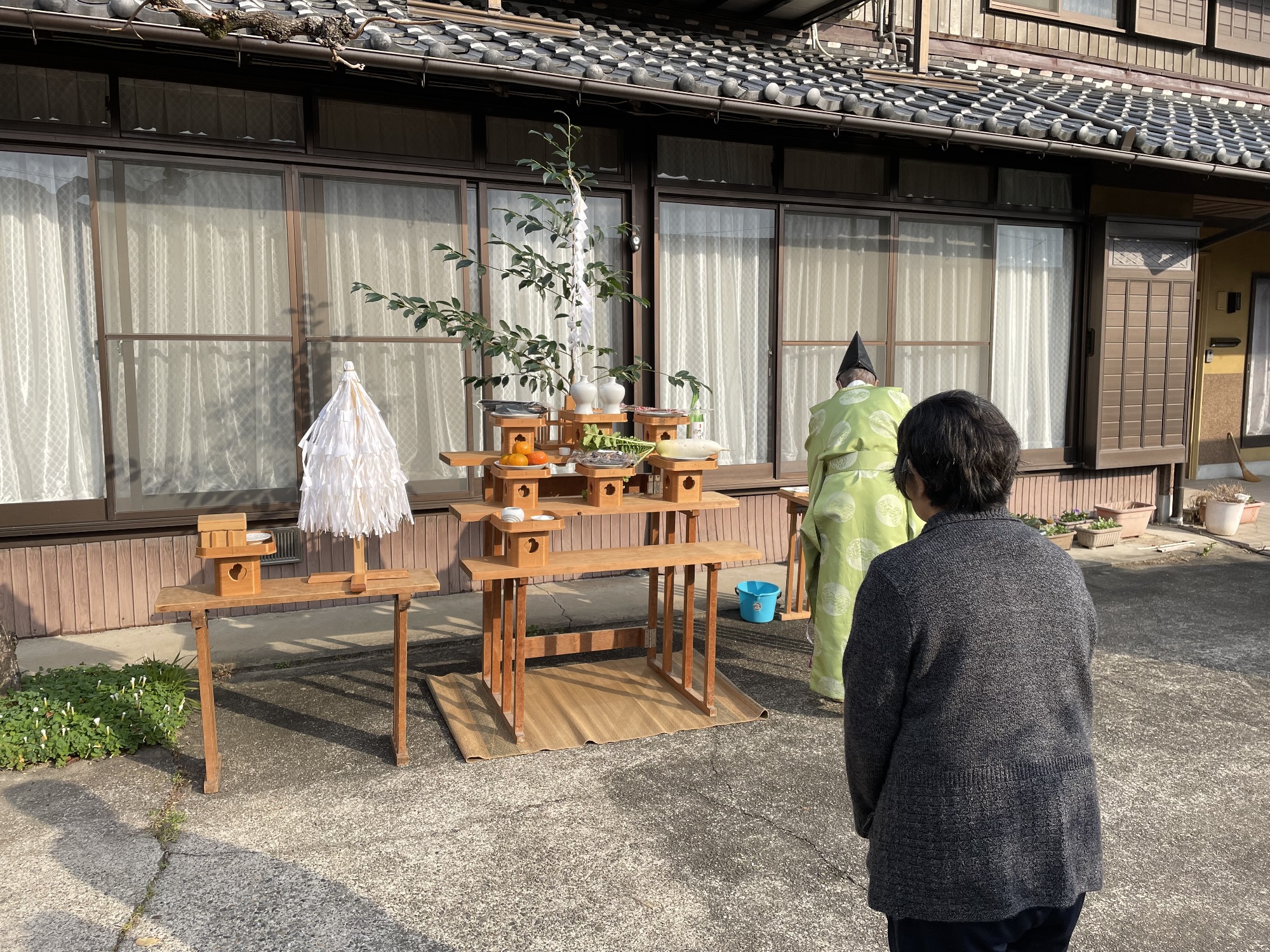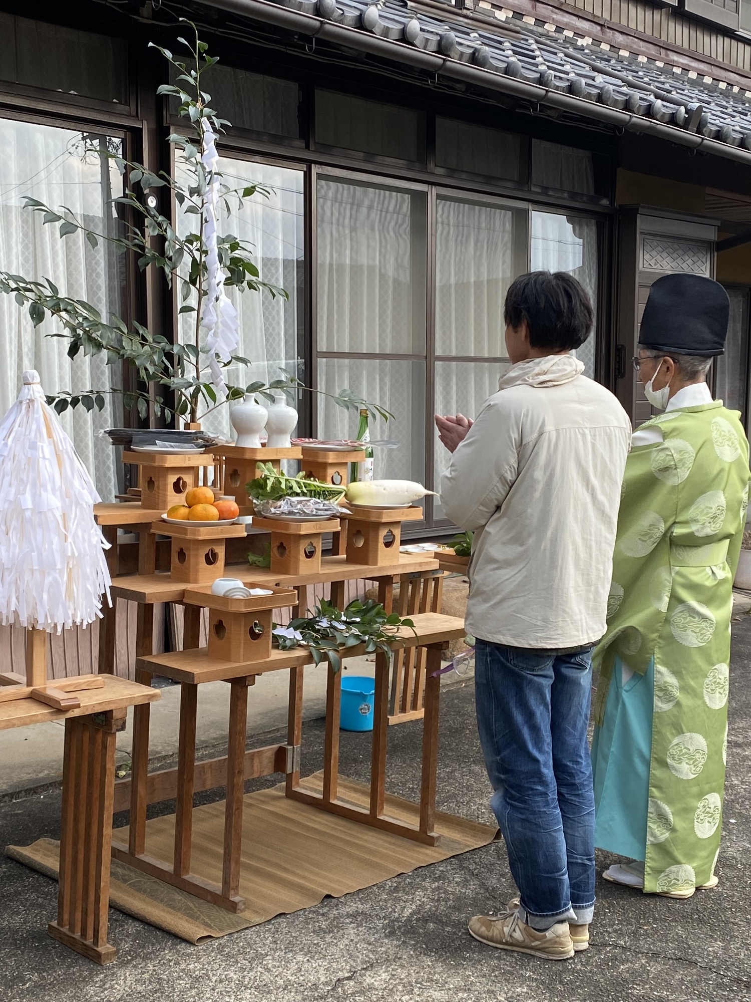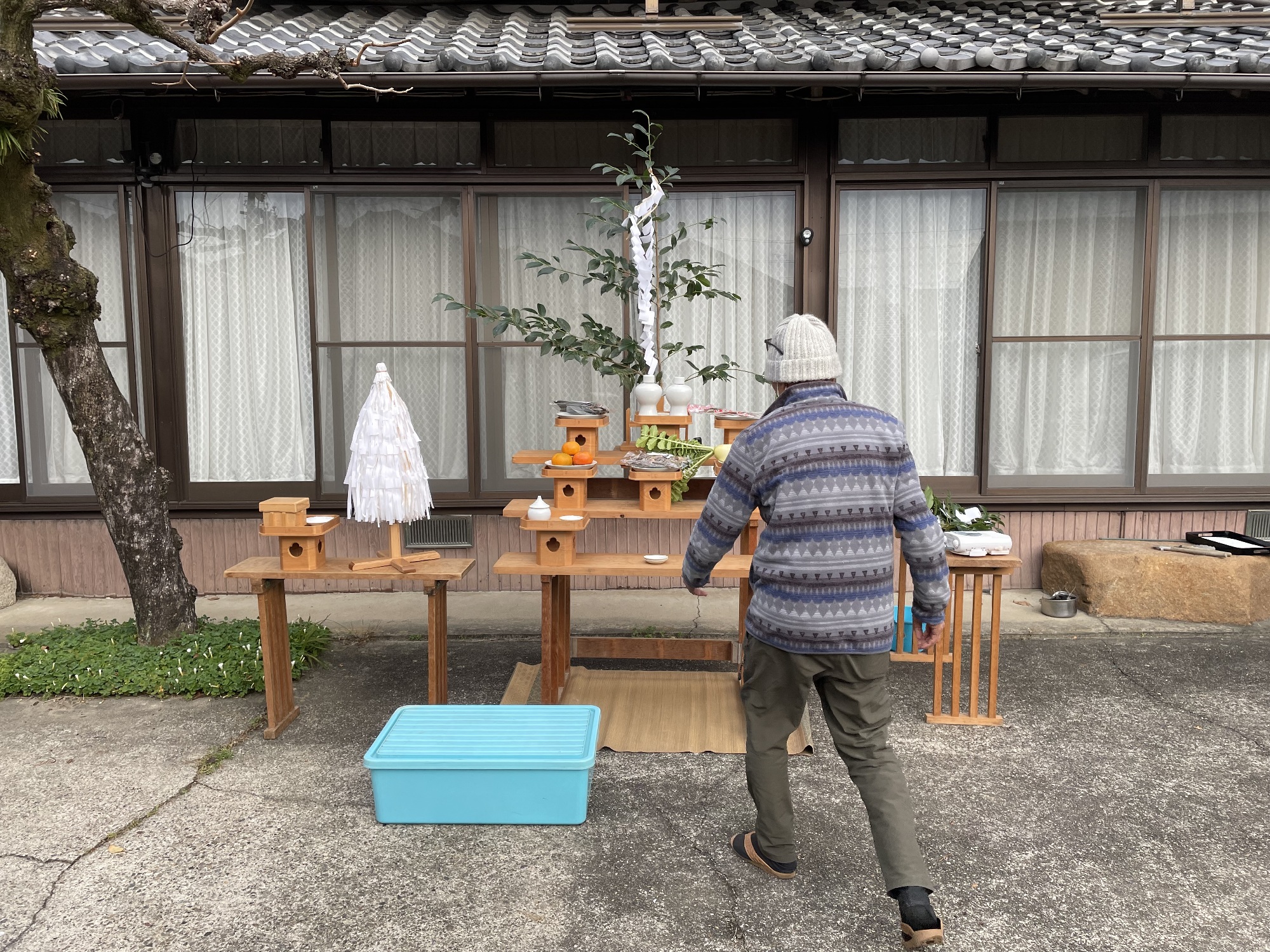 水の流れが変わる場所を触るため、工事を始める前にご家族とお祓いの儀式を執り行いました。