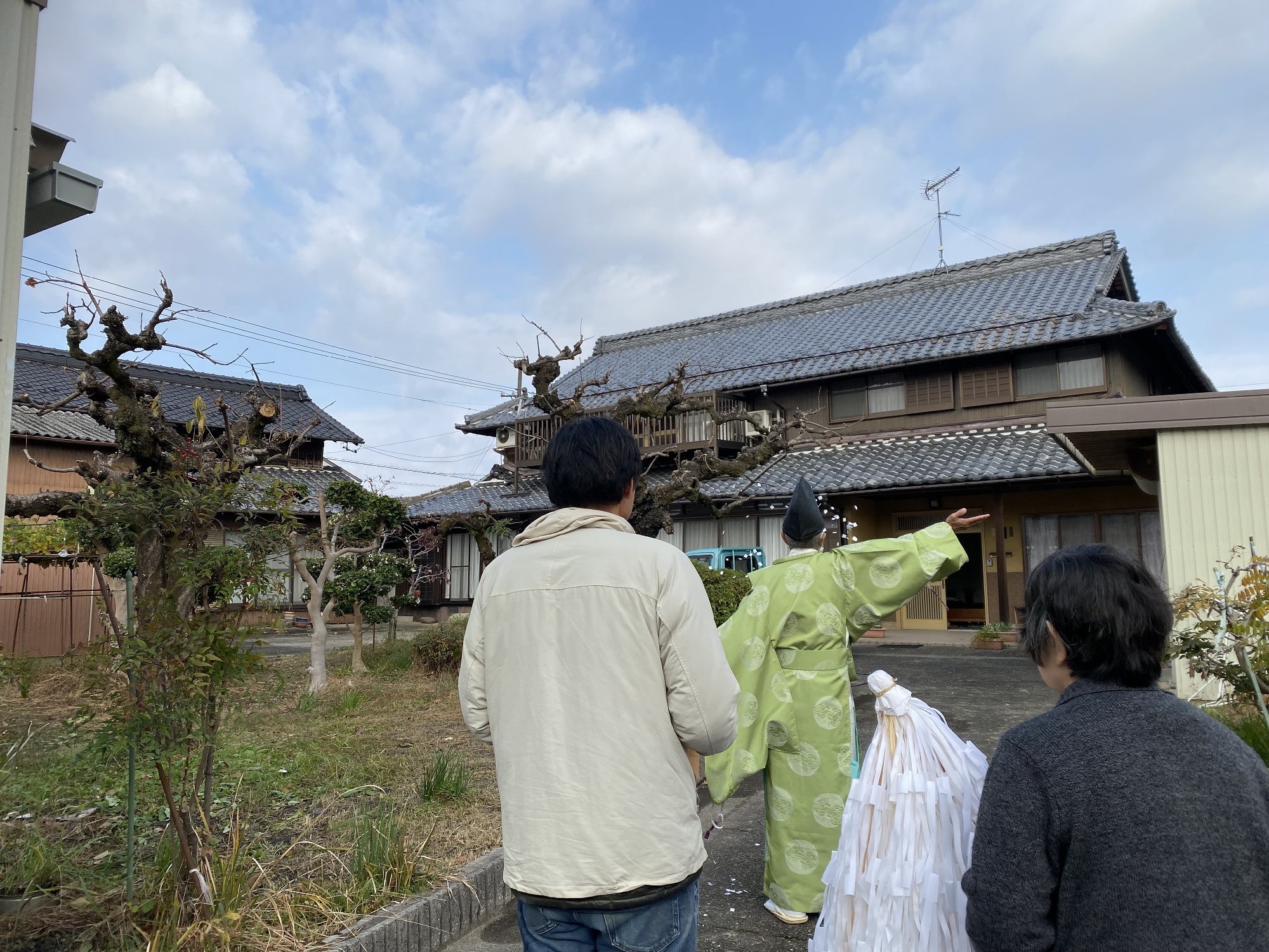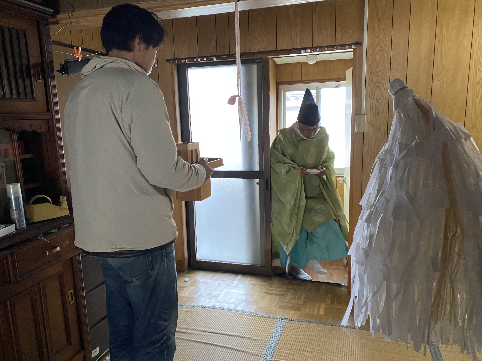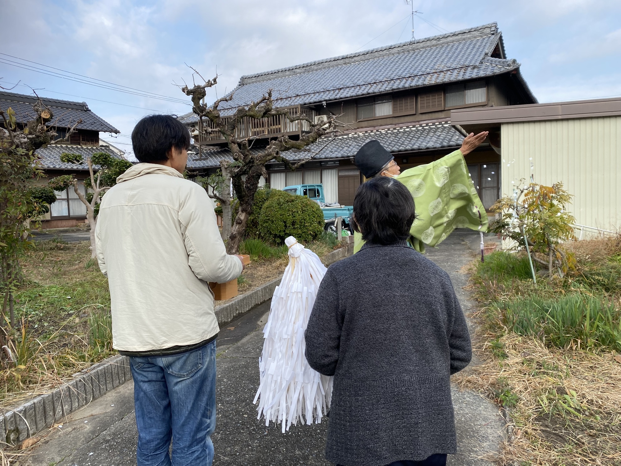 水の流れが変わる場所を触るため、工事を始める前にご家族とお祓いの儀式を執り行いました。