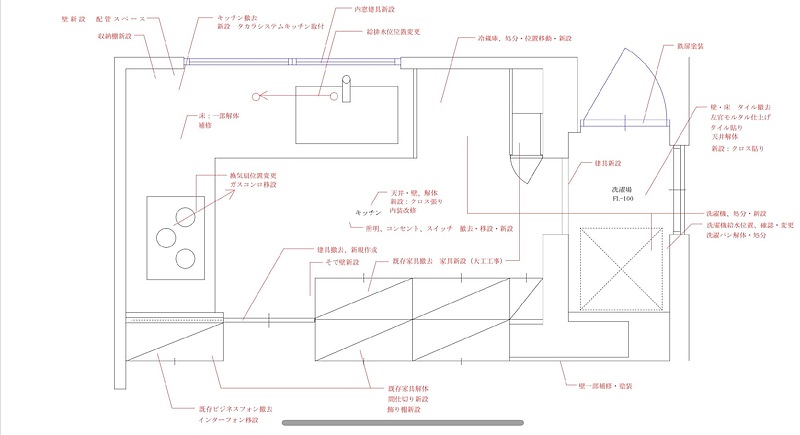 今回の改修工事では、キッチンの間取りを考えるところから始まります。