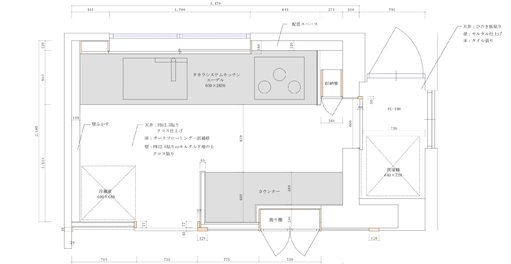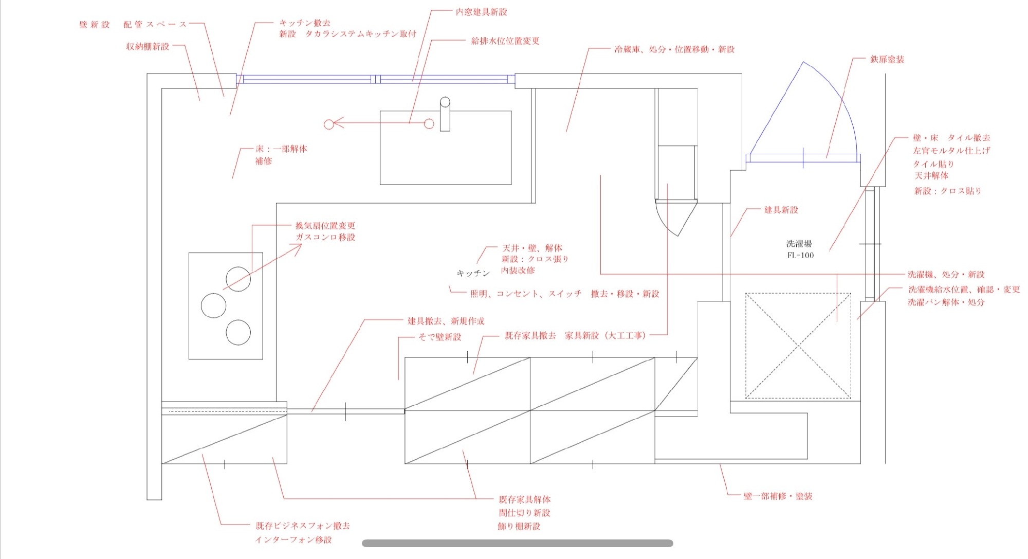 今回の改修工事では、キッチンの間取りを考えるところから始まります。