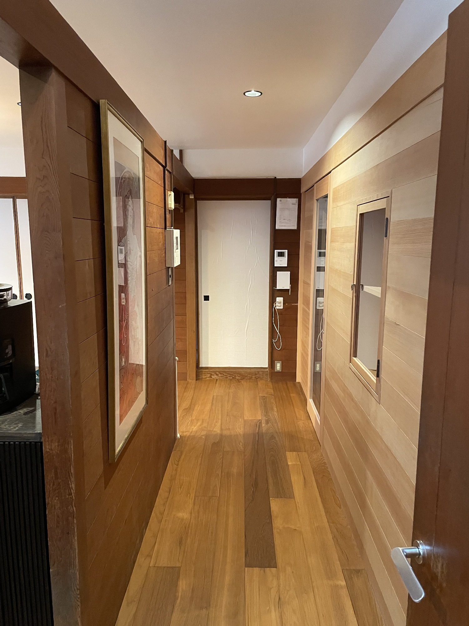 一皮むけた中から現れたのは、驚くほど綺麗な木目。しかも、元々この家に貼ってあった古い木材と、まるで見計らったかのように木目が一致したんです。