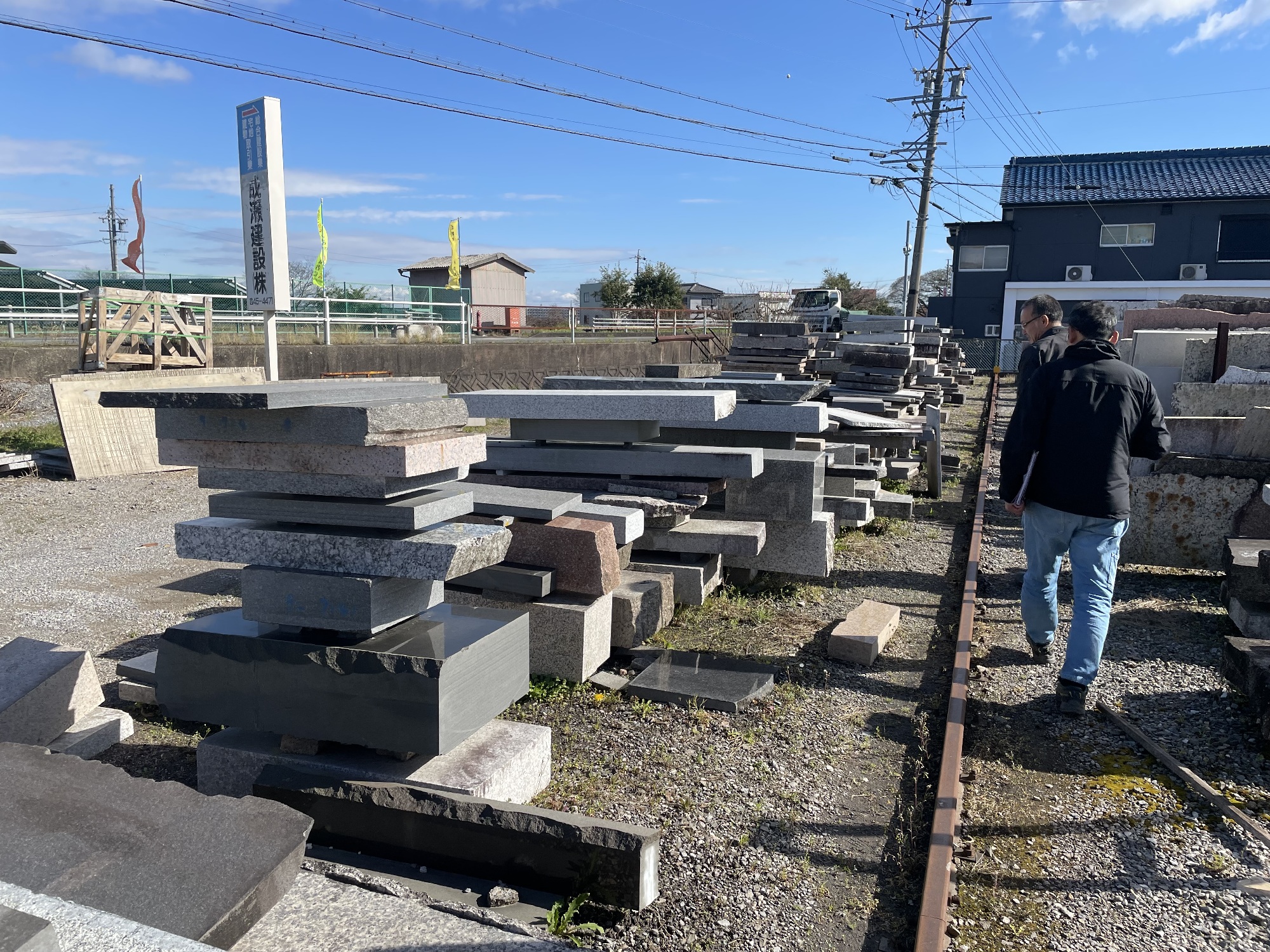 その壁を支える土台に「石」を使おうと思って、先日、石材店へ行ってきました。
