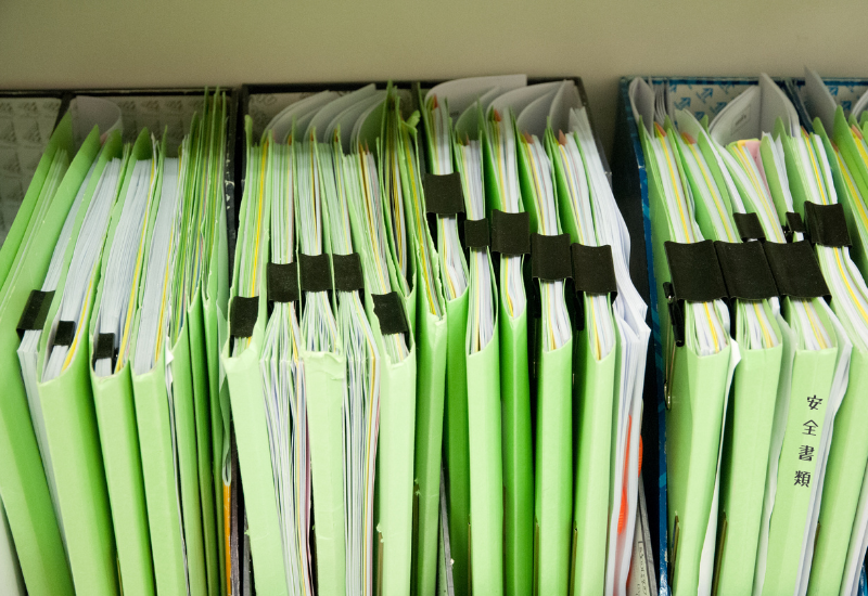 先に説明したように、グリーンファイルは、建設業界で長年使用されてきた安全管理や品質管理のための書類を綴じたファイルのことを示しています。この名称はファイルの表紙が緑色なことからつけられています。