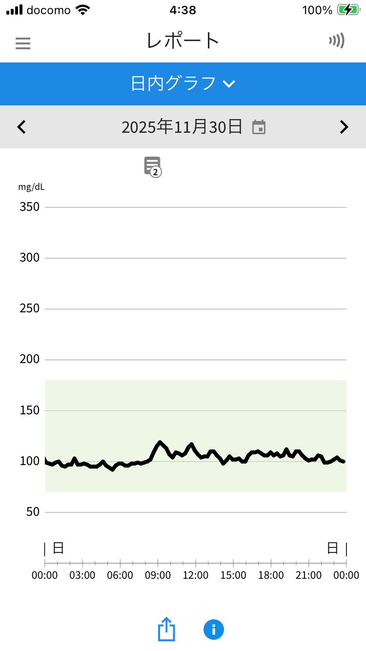 昨日(11/30)のリブレの24時間データがこれだ。