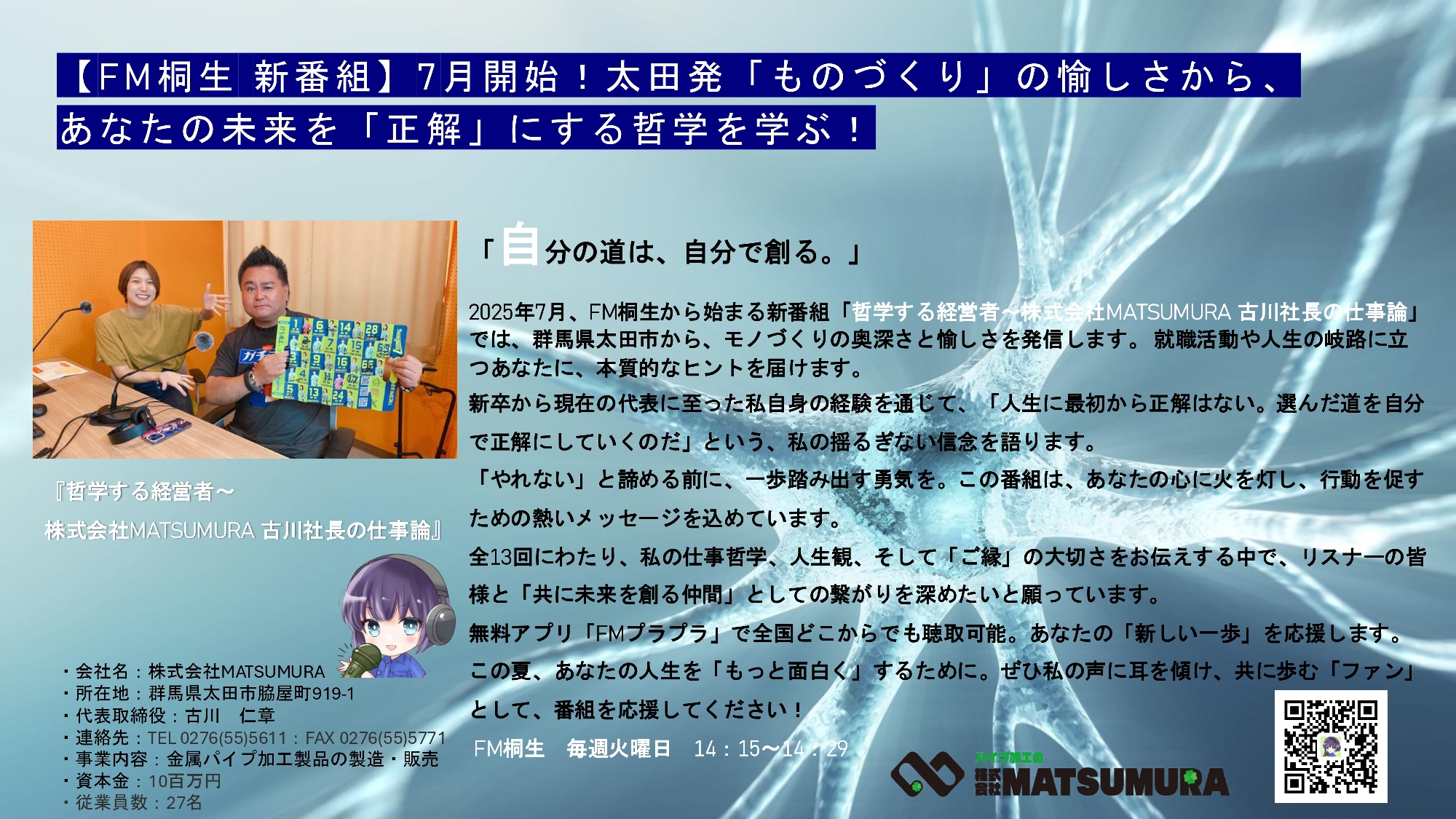 ラジオはFM桐生にて毎週火曜日 14:15~14:29の放送です。