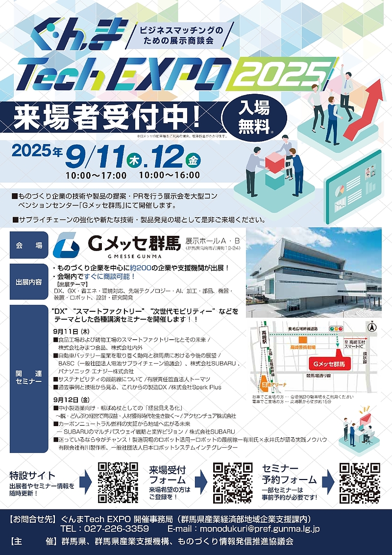 そんな中、今週9/11~9/12 Gメッセ群馬にてぐんまTech EXPO2025が開催されます。
