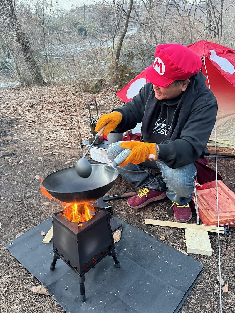 形から入るタイプなので、帽子もテントに合わせて「スーパーマリオ」風にコーディネートしてみました(笑)。