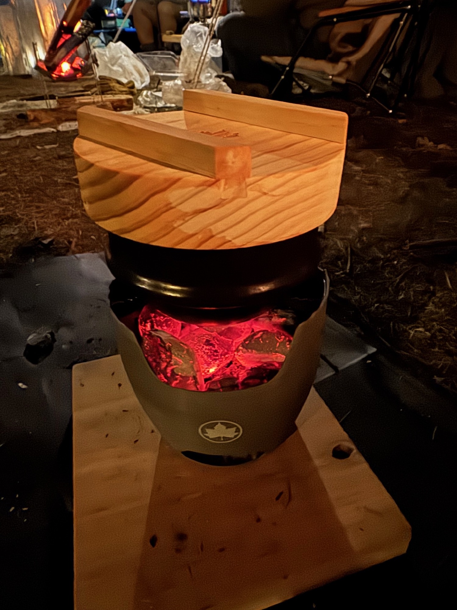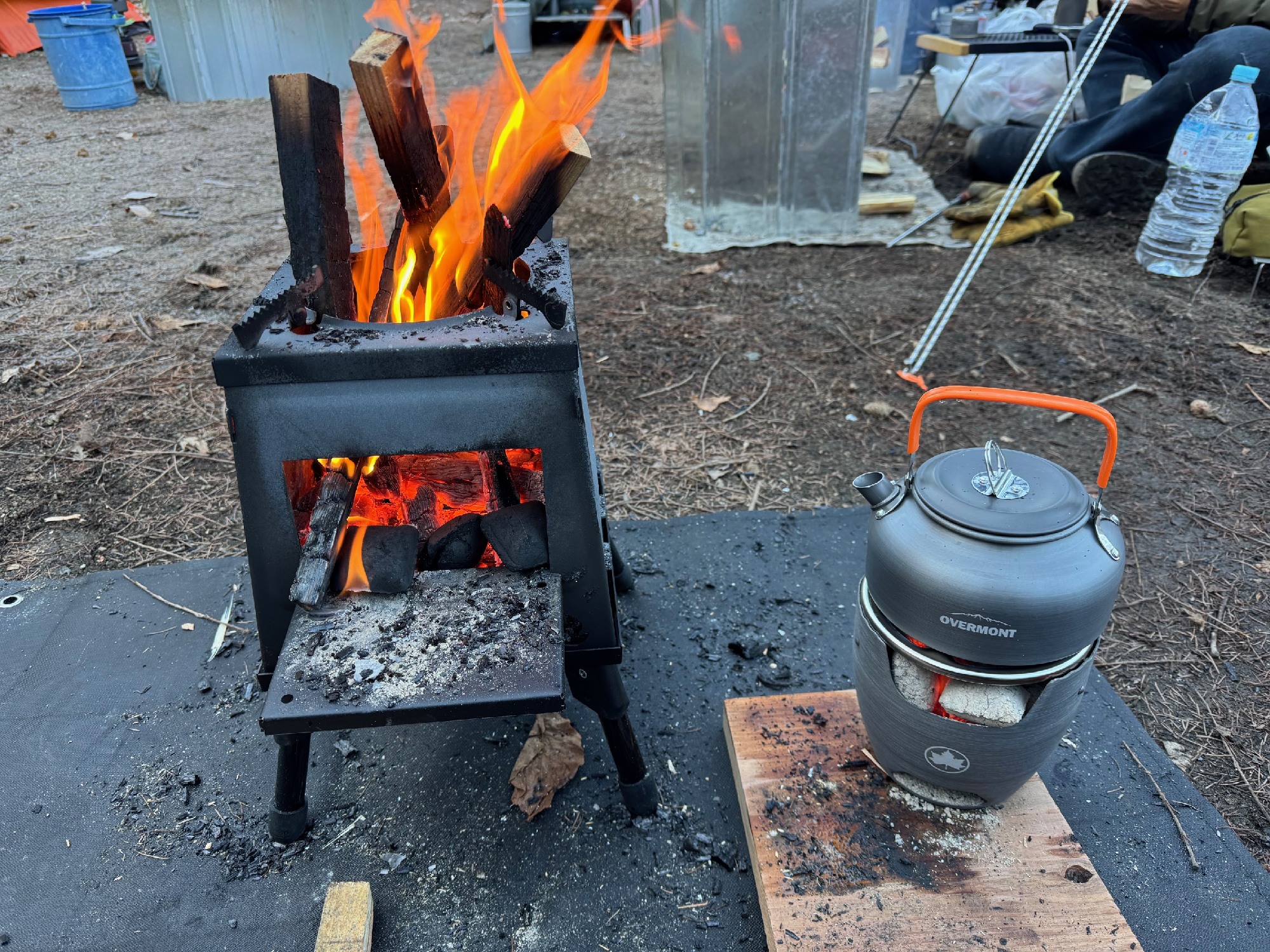 小型薪ストーブ: 煙が少なく、驚くほど暖かい。調理もこなす優れものです。