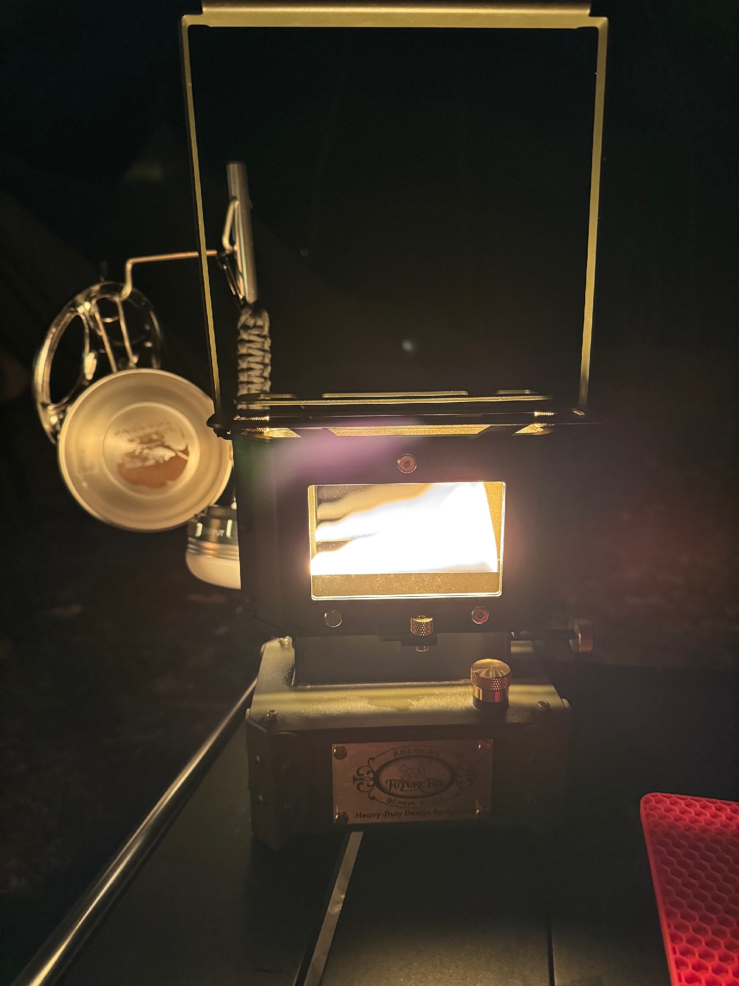 アイロンランタン: 揺らめく炎が美しく、上でお湯を沸かしたり肉を焼いたりと、実用性も抜群。