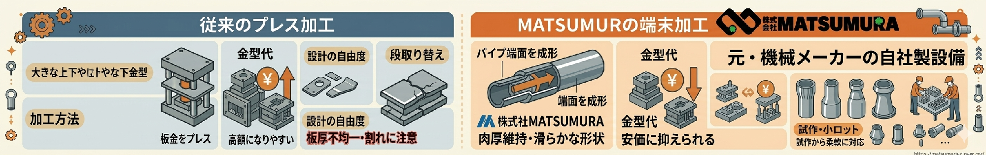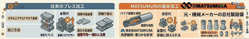 確かにプレスは馴染み深い技術ですが、実は私たちの得意とする「端末加工」には、プレスにはない大きなメリットが隠されています。