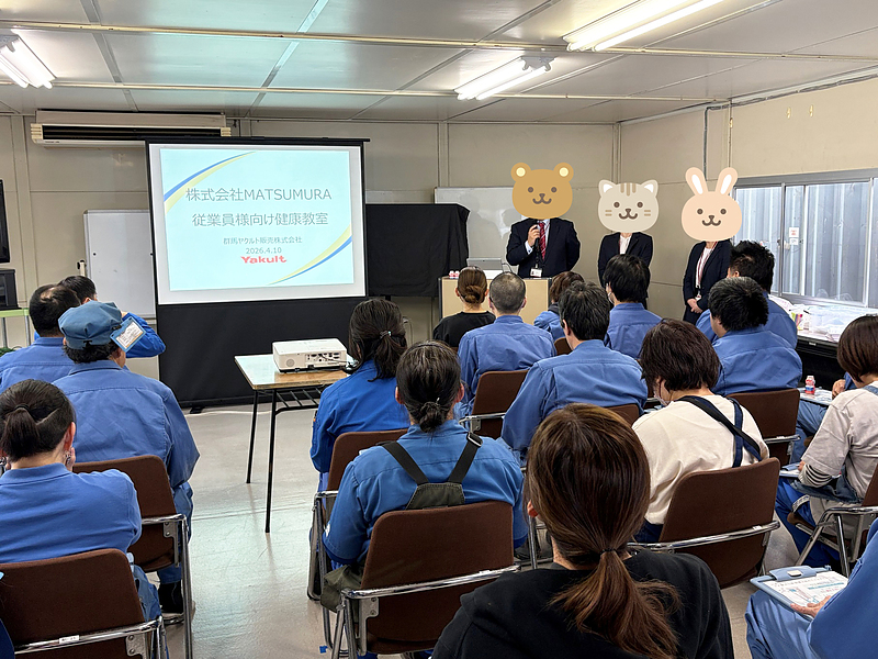 その一環として先日、群馬ヤクルト販売様にご協力いただき、「睡眠で疲労回復」をテーマにした健康教室を開催いたしました。