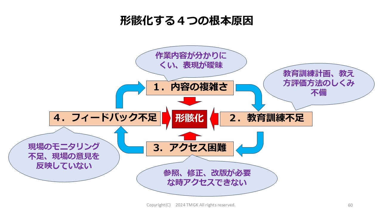 ・教育・訓練の無駄: 形骸化した手順書に基づいて教育・訓練を行うことは、無駄な
