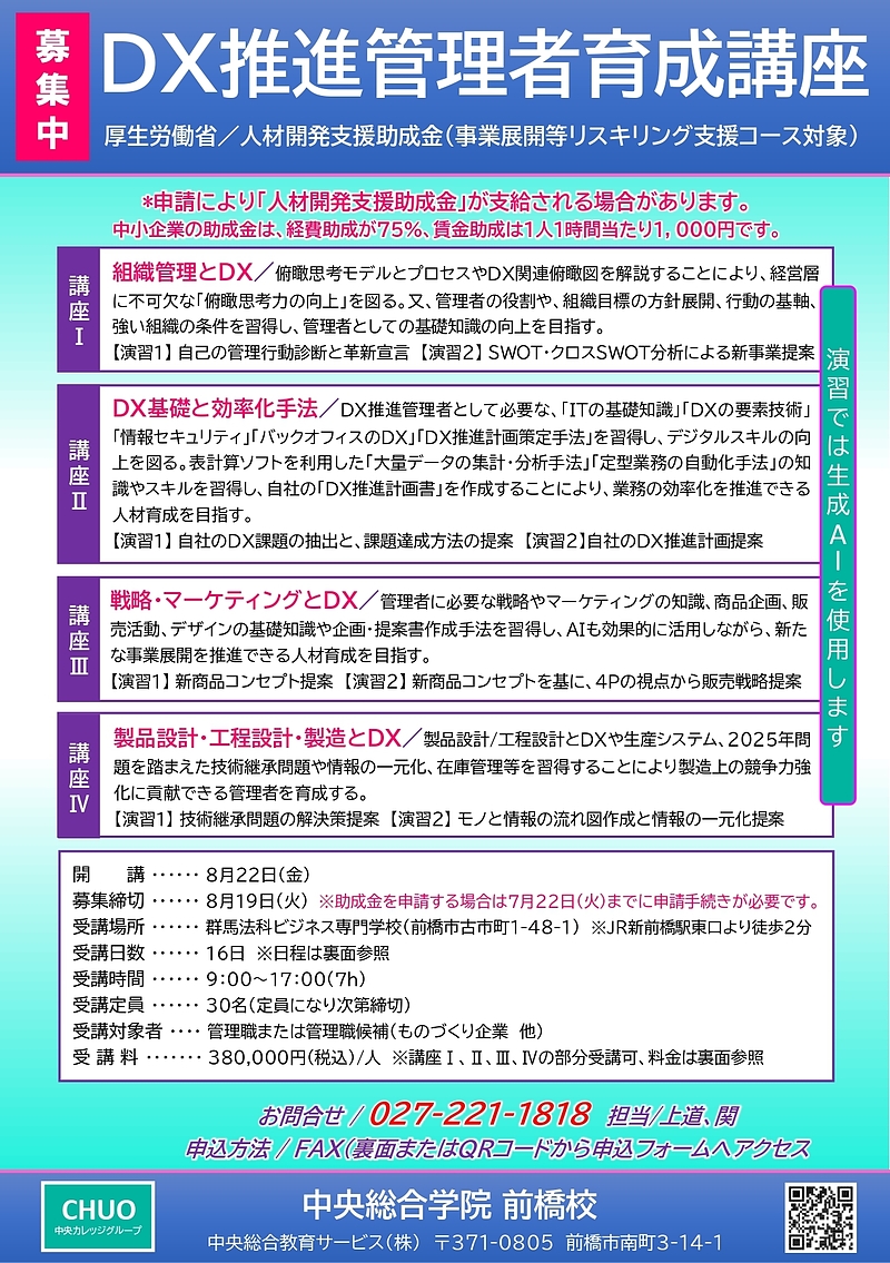 ~6年度開発した教育訓練プログラム「DX推進管理者育成講座」を今年度8月より